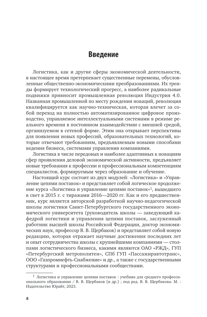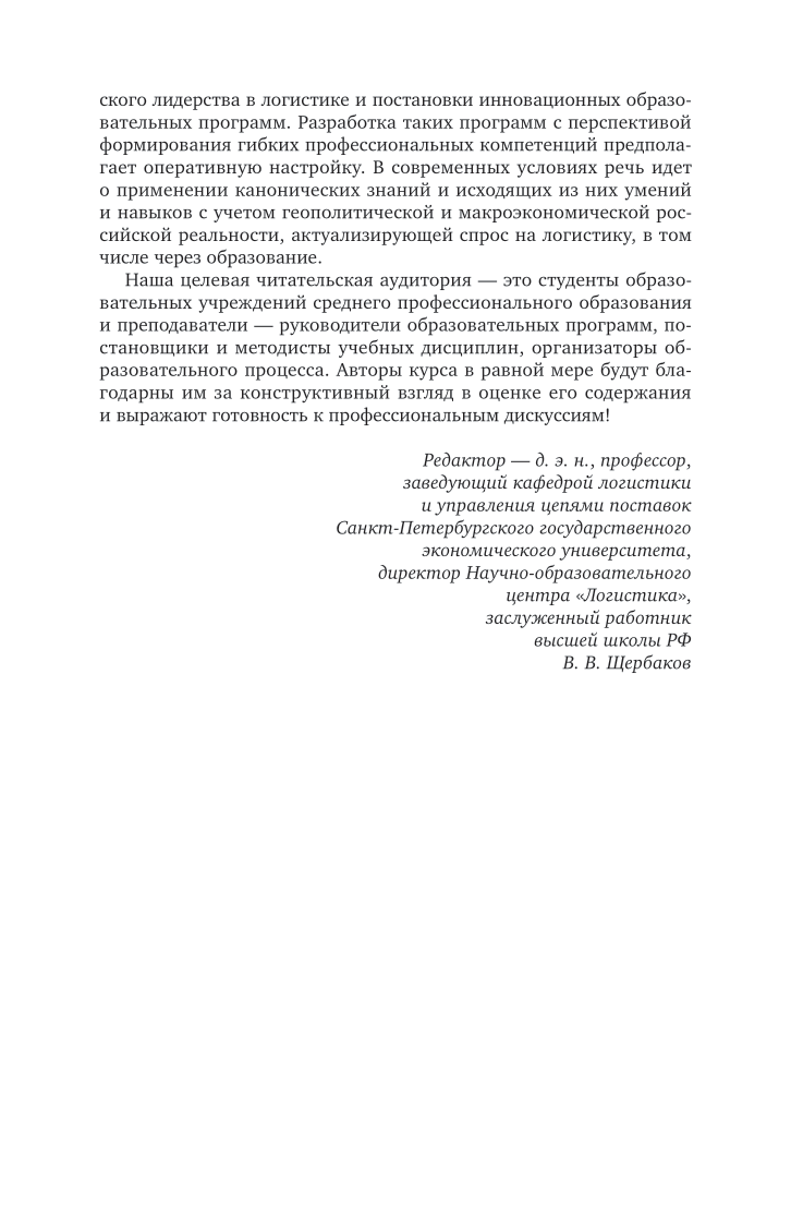 В курсе освещаются базовые положения управления цепями поставок, необходимые для формирования общекультурных и профессиональных компетенций менеджера-логиста. Раскрываются принципы формирования и функционирования цепей поставок с учетом современных тенденций развития экономики. Курс ориентирует на накопление знаний и обретение навыков для обоснования инновационных логистических решений. В результате обучения будущие специалисты смогут овладеть искусством выстраивать отношения и осуществлять взаимодействия с хозяйственными партнерами - предприятиями-производителями и посредниками в цепях поставок, работать на создание конкурентных преимуществ. Содержание курса отвечает требованиям российской системы среднего профессионального образования к реализации основных профессиональных образовательных программ с применением практико-ориентированного подхода. Соответствует актуальным требованиям федерального государственного образовательного стандарта среднего профессионального образования и профессиональным требованиям. Курс рекомендуется для студентов учреждений среднего профессионального образования, обучающихся по экономическим специальностям.