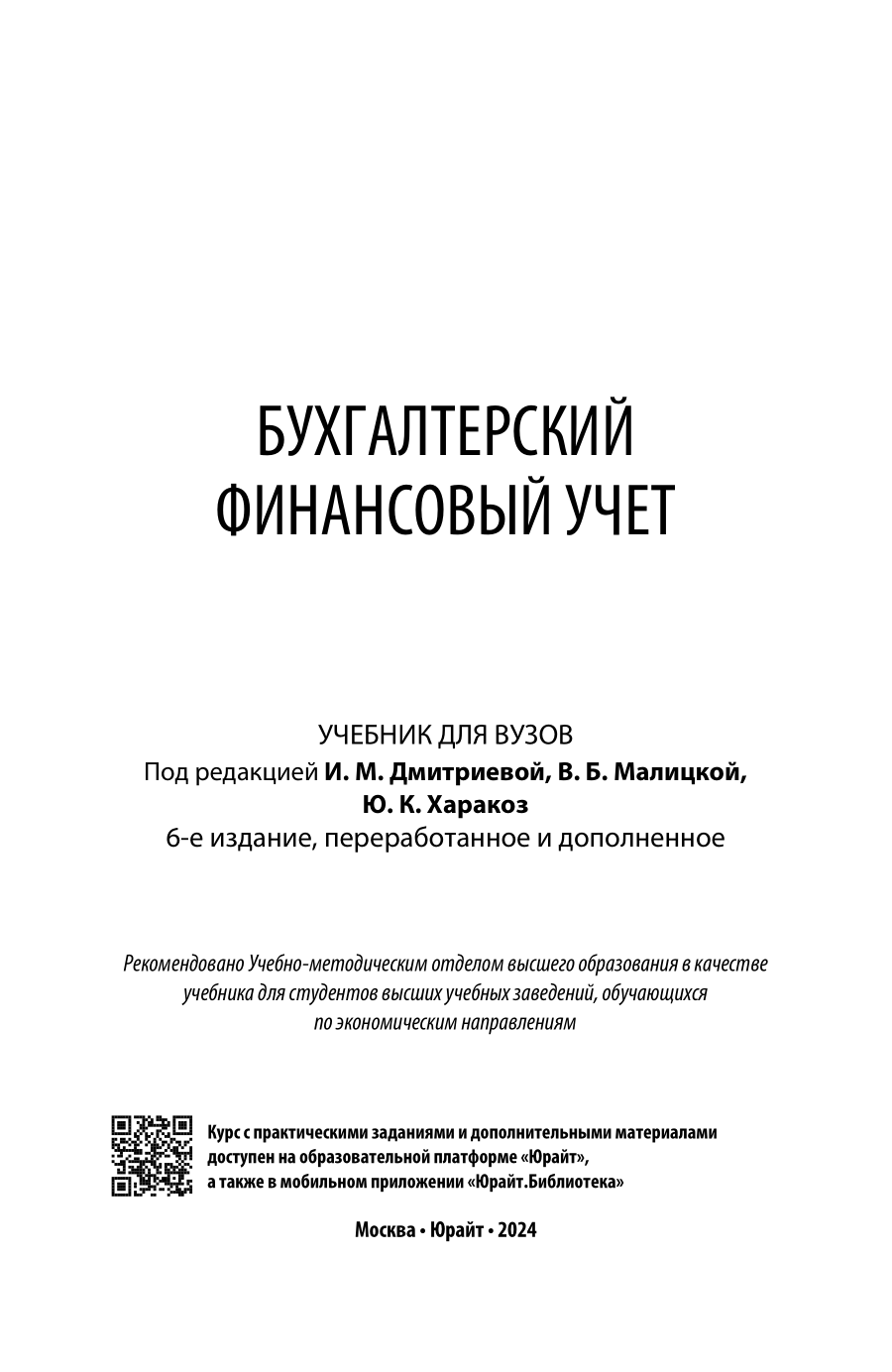 Бухгалтерский финансовый учет 6-е изд. пер. и доп. Учебник для вузов (Дмитриева Ирина Михайловна; Малицкая Виктория Борисовна), 2024