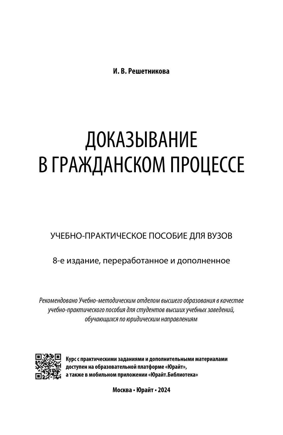 Доказывание в гражданском процессе 8-е изд. пер. и доп. Учебно-практическое пособие для вузов (Ирина Валентиновна Решетникова); ЮРАЙТ, 2023