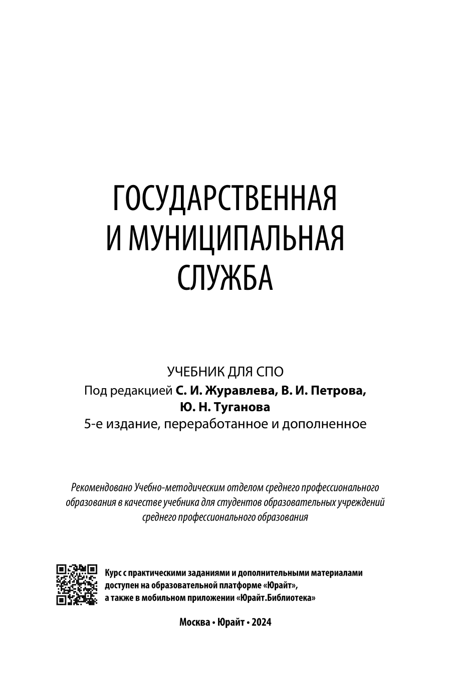 Государственная и муниципальная служба 5-е изд. пер. и доп. Учебник для СПО (Юрий Николаевич Туганов); ЮРАЙТ, 2023