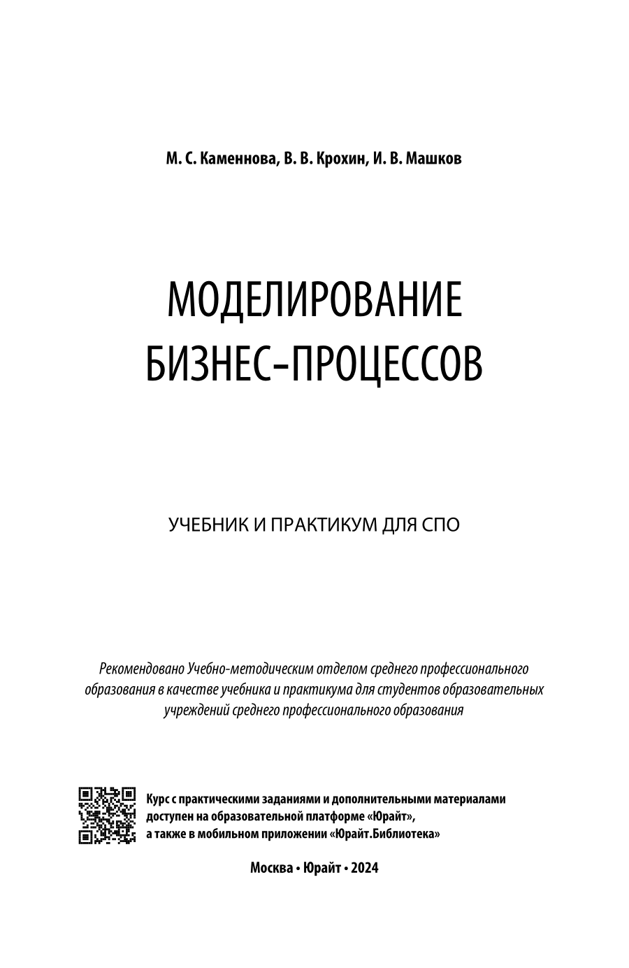 Моделирование бизнес-процессов. Учебник и практикум для СПО (Виктор Васильевич Крохин); ЮРАЙТ, 2023