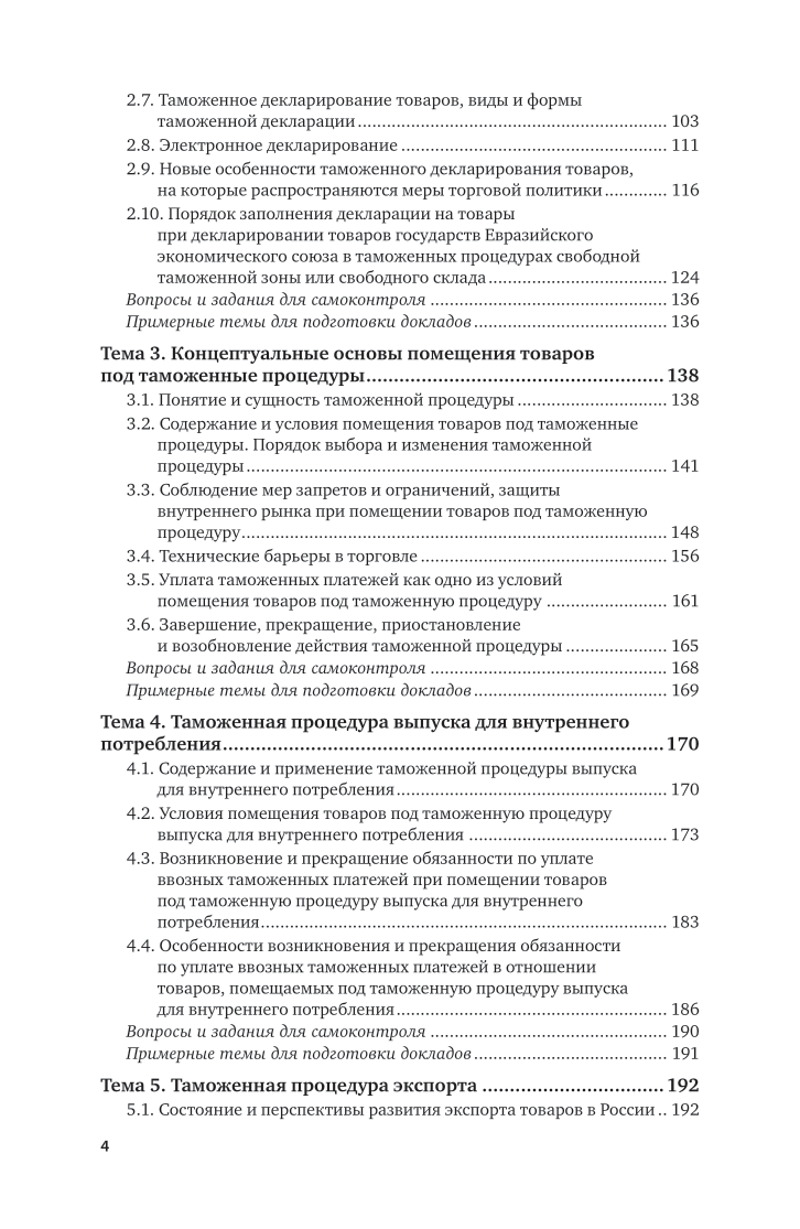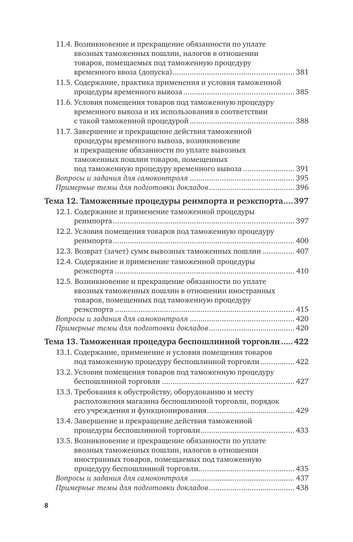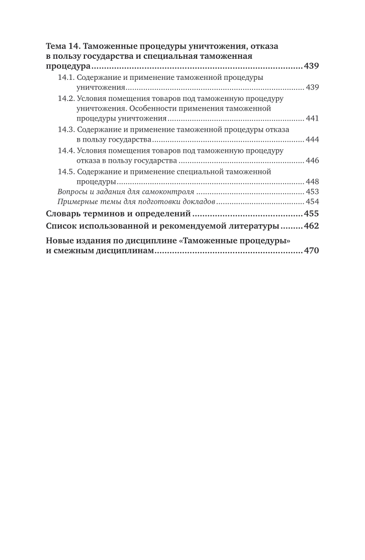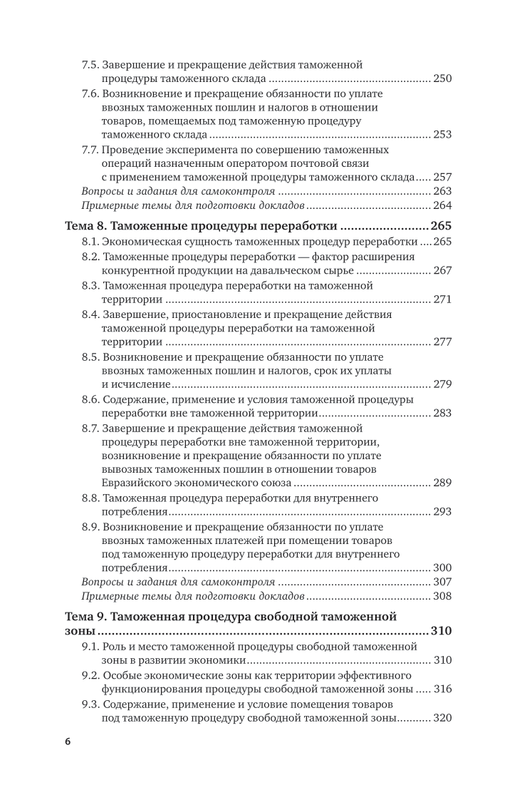 Основное назначение курса «Таможенные процедуры», состоящего из 14 тем, - помочь в освоении студентами правовых, теоретических основ и практических навыков таможенных операций товаров при помещении их под различные таможенные процедуры. На углубленном уровне раскрыты содержание, применение и условия помещения товаров под таможенные процедуры. Курс обладает существенной новизной по сравнению с ранее изданными аналогичными учебниками. Отличительной особенностью курса является то, что в нем учебный материал дополняется и расширяется новейшими законодательными и нормативными актами и сведениями с учетом введенных в отношении Российской Федерации санкций и торговых ограничений. Современный методический аппарат (вопросы и задания для самоконтроля, примерные темы для подготовки докладов, рекомендуемая литература, словарь терминов и определений) способствует успешному освоению студентами предлагаемого курса «Таможенные процедуры». Соответствует актуальным требованиям федерального государственного образовательного стандарта высшего образования. Для студентов, обучающихся по направлению подготовки «Таможенное дело» (уровень «специалитет»), а также для бакалавров, магистрантов высших учебных заведений, обучающихся по экономическим специальностям. Будет полезен аспирантам, преподавателям, изучающим или преподающим дисциплины по таможенному делу.
