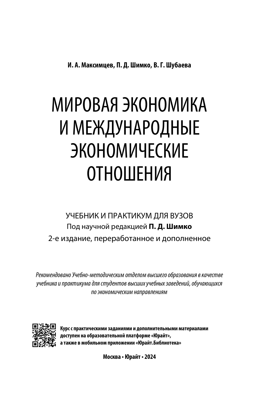 Мировая экономика и международные экономические отношения 2-е изд. пер. и доп. Учебник и практикум для вузов (Максимцев Игорь Анатольевич; Шимко Петр Дмитриевич; Шубаева Вероника Георгиевна), 2024