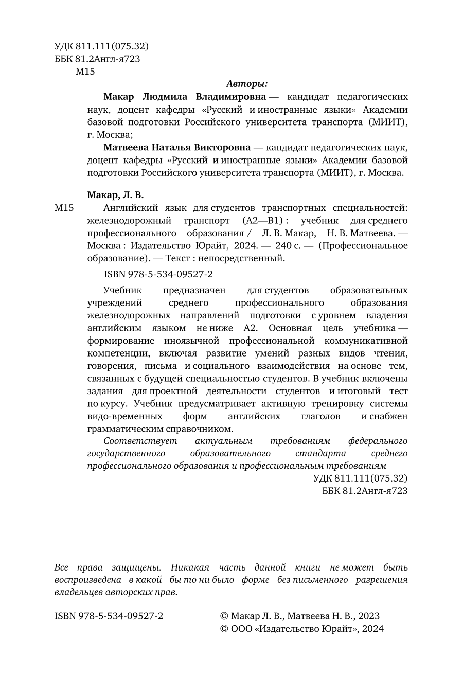 Английский язык для студентов транспортных специальностей: железнодорожный транспорт (A2-B1). Учебник для СПО (Людмила Владимировна Макар); ЮРАЙТ, 2023