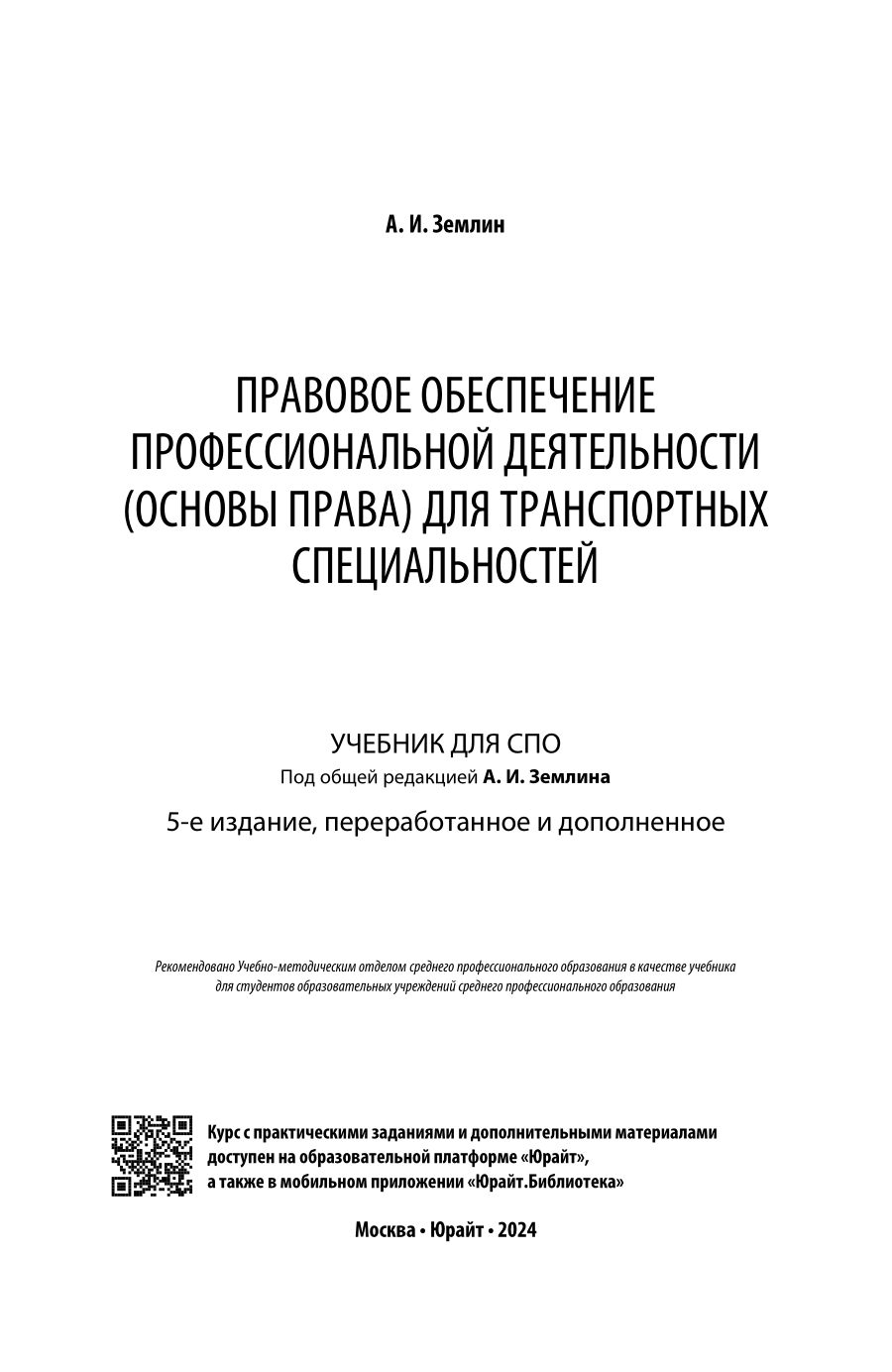Правовое обеспечение профессиональной деятельности (основы права) для транспортных специальностей 5-е изд. пер. и доп. Учебник для СПО (Тахир Сейпуевич Эфендиев); ЮРАЙТ, 2023