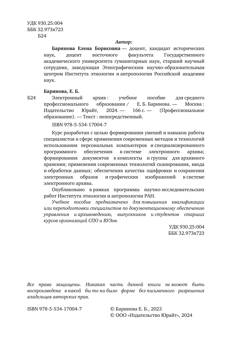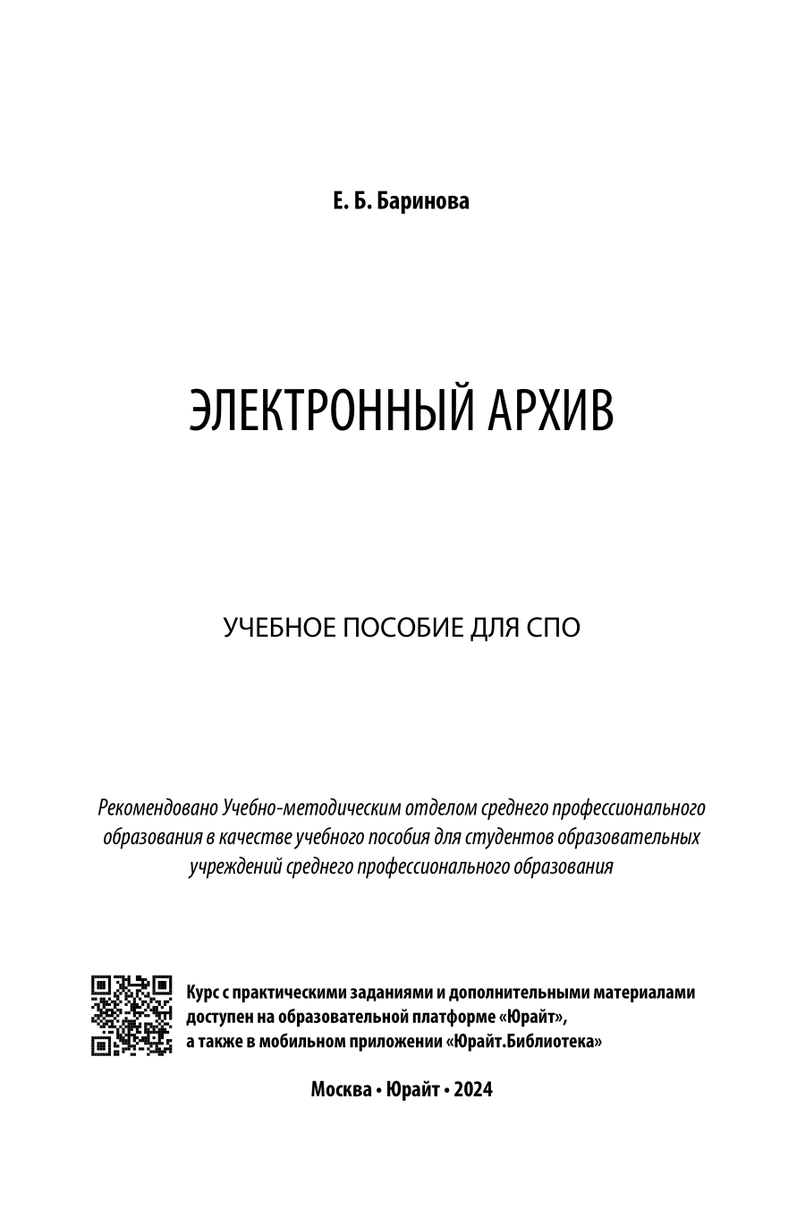 Электронный архив. Учебное пособие для СПО (Елена Борисовна Баринова); ЮРАЙТ, 2023