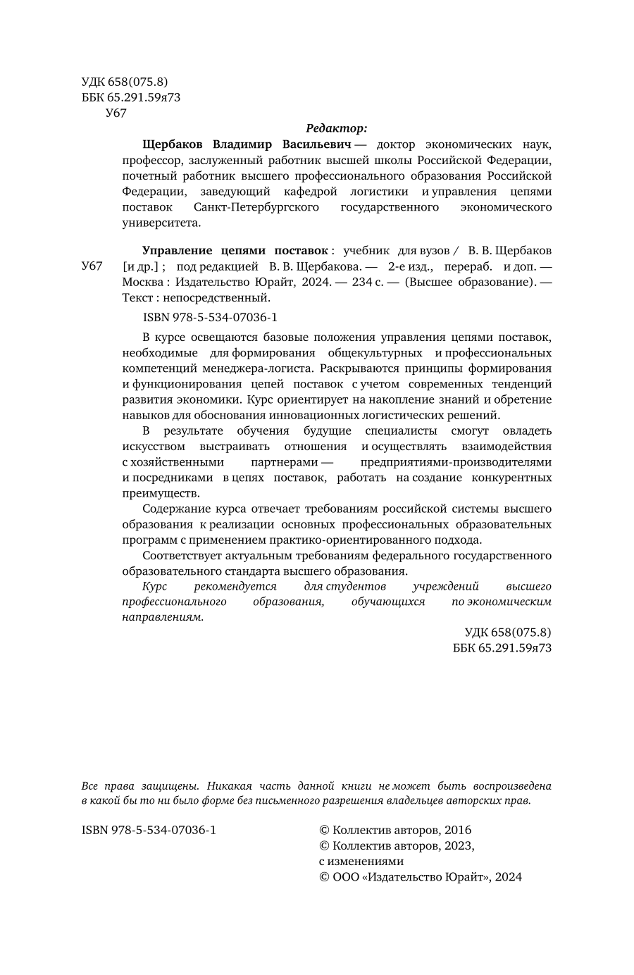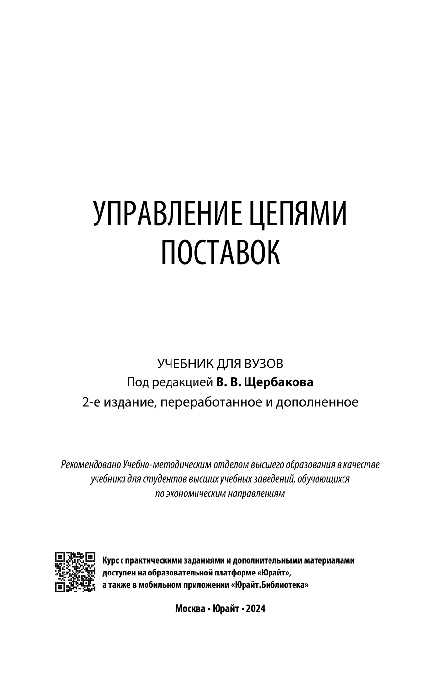 В курсе освещаются базовые положения управления цепями поставок, необходимые для формирования общекультурных и профессиональных компетенций менеджера-логиста. Раскрываются принципы формирования и функционирования цепей поставок с учетом современных тенденций развития экономики. Курс ориентирует на накопление знаний и обретение навыков для обоснования инновационных логистических решений. В результате обучения будущие специалисты смогут овладеть искусством выстраивать отношения и осуществлять взаимодействия с хозяйственными партнерами - предприятиями-производителями и посредниками в цепях поставок, работать на создание конкурентных преимуществ. Содержание курса отвечает требованиям российской системы высшего образования к реализации основных профессиональных образовательных программ с применением практико-ориентированного подхода. Соответствует актуальным требованиям федерального государственного образовательного стандарта высшего образования. Курс рекомендуется для студентов учреждений высшего профессионального образования, обучающихся по экономическим направлениям.