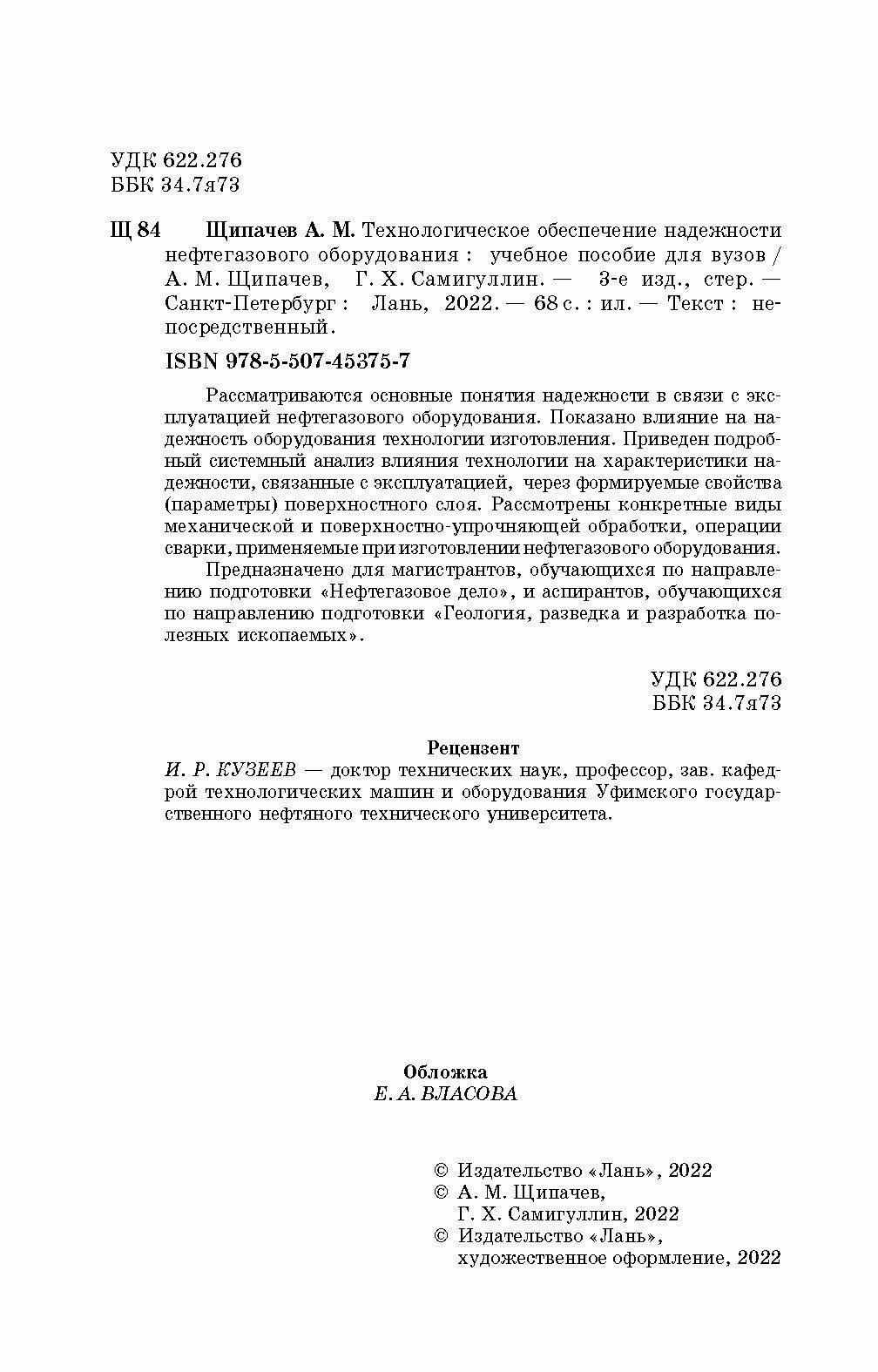 Сервис сравнения цен СкидкаГИД предлагает сравнить цены на товар «Книга: Технологическое обеспечение надежности нефтегазового оборудования. Учебное пособие для вузов (Г. Х. Самигуллин); Издательство ЛАНЬ, 2022»