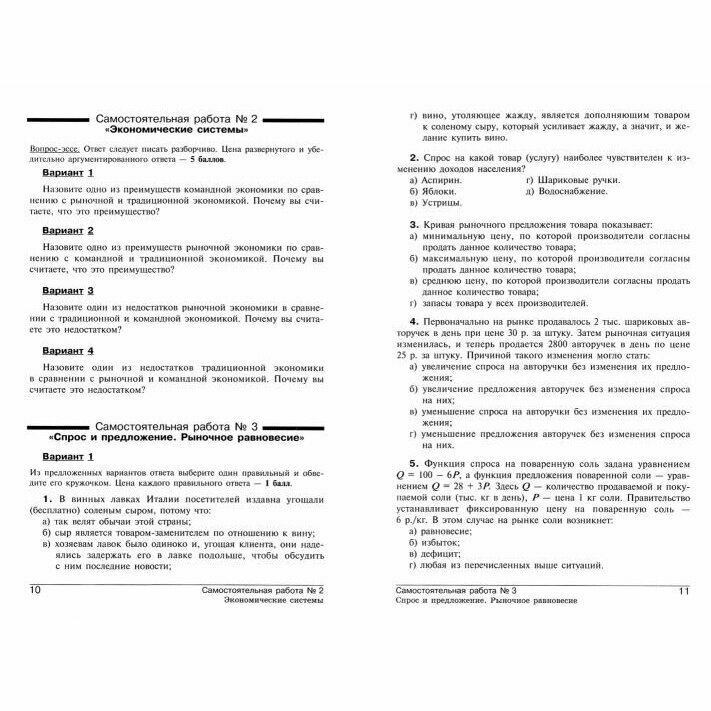 Самостоятельные и контрольные работы по экономике. Базовый и углубленный уровни. Пособие для 10-11 классов общеобразовательных организаций (Савицкая Елена Владиславовна; Жданова Александра Олеговна); Вита-Пресс, 2021