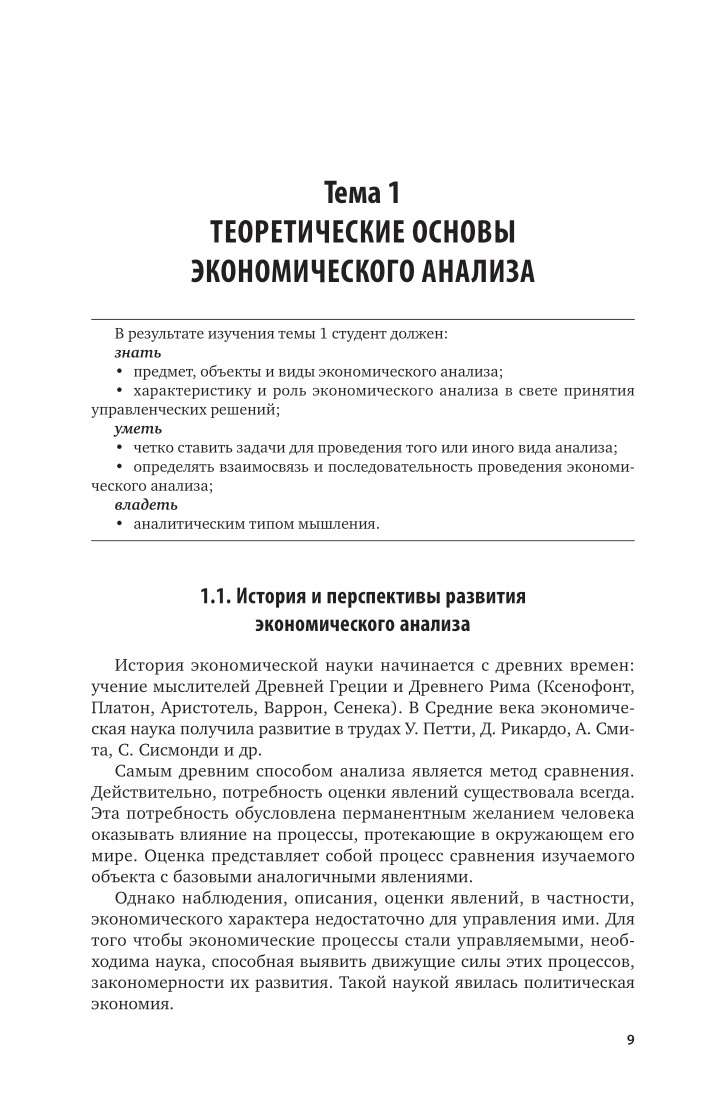 В курсе рассмотрены теоретические основы и понятия экономического анализа как самостоятельной науки, показано его возникновение, история и современное состояние. Представлены методики анализа объема и себестоимости производства и реализации продукции, использования основных средств, материальных и трудовых ресурсов, финансовых результатов и финансового положения предприятия. Проанализирована структура комплексного бизнес-плана и роль анализа в разработке и мониторинге основных его показателей. Издание включает вопросы и задания для самоконтроля, а также список рекомендуемой литературы. К курсу прилагаются вспомогательные материалы для практических заданий, расположенные в электронной библиотечной системе «Юрайт» (). Соответствует актуальным требованиям Федерального государственного образовательного стандарта среднего профессионального образования и профессиональным требованиям. Для студентов образовательных учреждений среднего профессионального образования, а также руководителей предприятий всех форм собственности, специалистов по экономическому анализу деятельности организаций.
