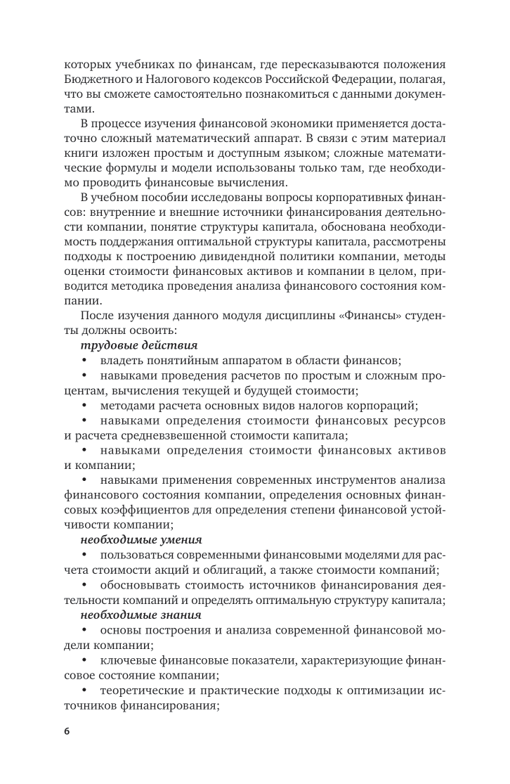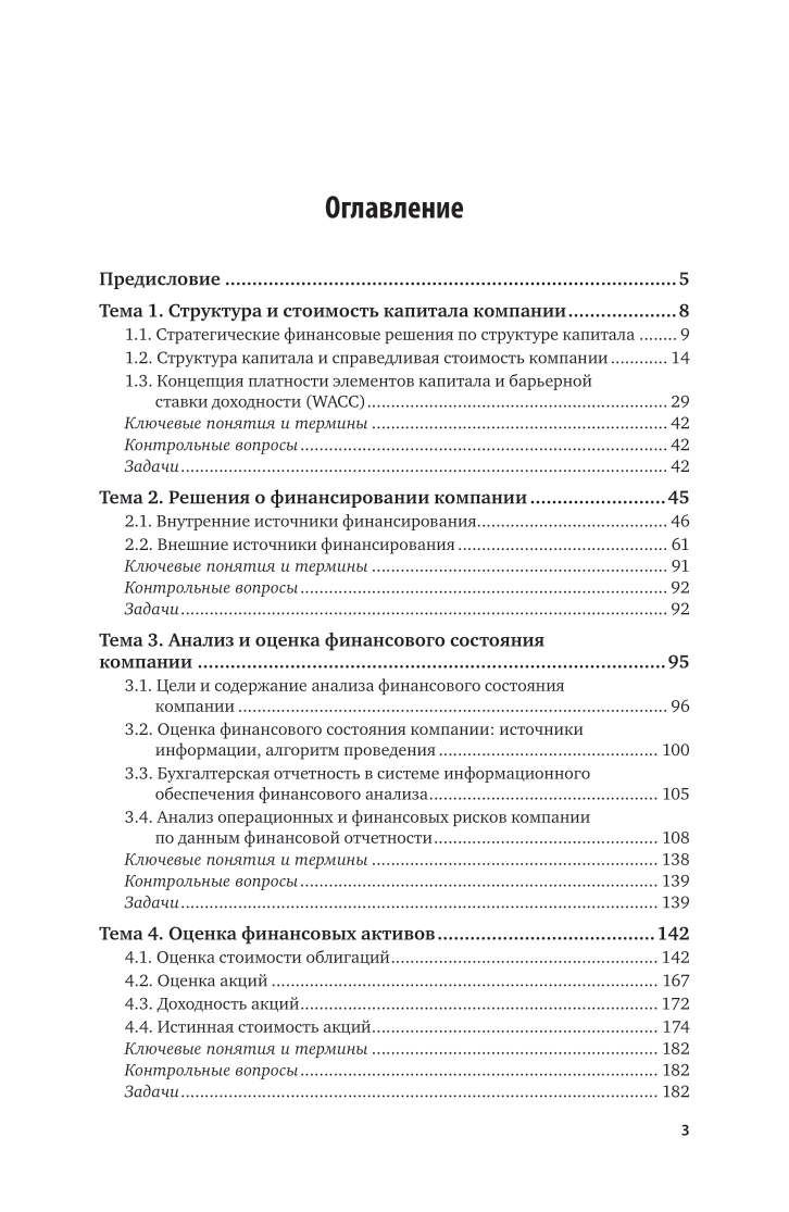 В учебном пособии исследованы вопросы корпоративных финансов: внутренние и внешние источники финансирования деятельности компании, понятие структуры капитала; обоснована необходимость поддержания оптимальной структуры капитала, рассмотрены подходы к построению дивидендной политики компании, методы оценки стоимости финансовых активов и компании в целом, приводится методика проведения анализа финансового состояния компании. Учебно-методический комплекс книги включает ключевые понятия и термины, контрольные вопросы и задачи, которые помогут студентам в освоении теоретического материала. Соответствует актуальным требованиям федерального государственного образовательного стандарта среднего профессионального образования и профессиональным требованиям. Для студентов среднего профессионального образования; может быть использовано при подготовке специалистов по программам Master of Business Administration (МВА), а также при профессиональной переподготовке.