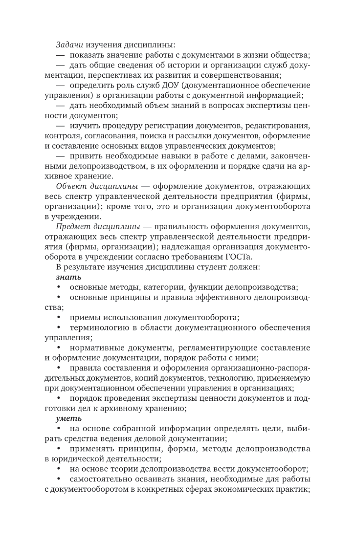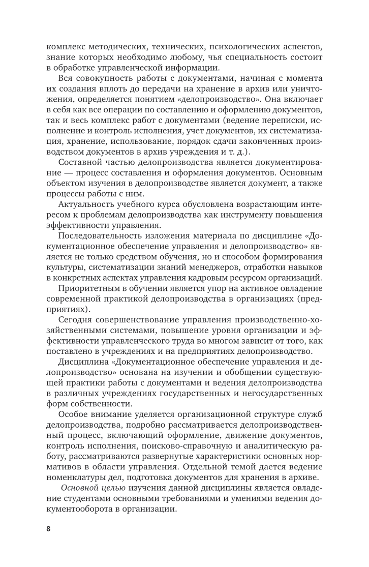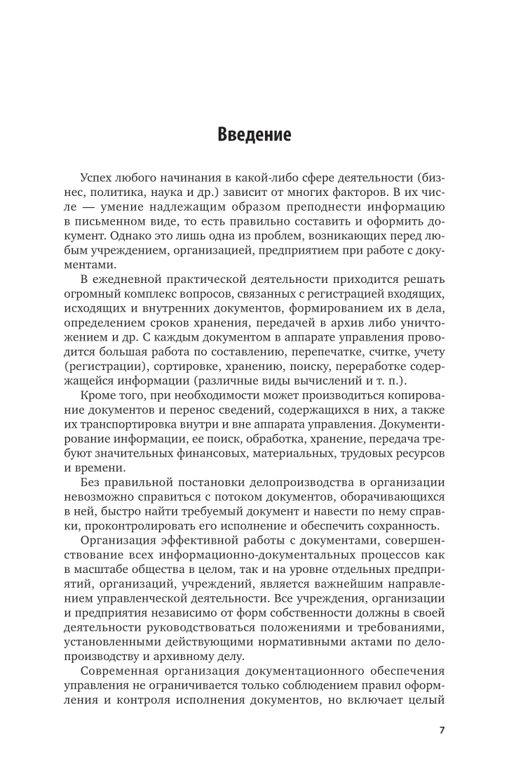 Данный курс на основе действующей общегосударственной нормативной базы отражает опыт документационного обеспечения управленческой деятельности современных государственных и негосударственных организаций, а также использование компьютерной техники и технологий в этом процессе. В курсе учтены особенности, связанные с работой с документами в организациях разных форм собственности. Особое внимание уделено правилам оформления служебных документов в соответствии с требованиями российских и международных стандартов. Соответствует актуальным требованиям федерального государственного образовательного стандарта высшего образования. Для студентов, изучающих вопросы практики работы с документами и ведения делопроизводства, а также специалистов по делопроизводству различных учреждений государственных и негосударственных форм собственности.