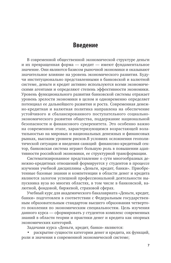 В курсе систематизированно и комплексно изложены современные теоретические и практические вопросы денег, денежного обращения и кредита, структуры кредитно-банковской и валютной системы. Дается характеристика платежной системы, основных форм и видов кредита, платежного баланса, международных резервов. Раскрываются содержание и особенности денежно-кредитного регули-рования, международных валютно-кредитных и расчетных отношений, перспективы валютного мироустройства. Соответствует актуальным требованиям федерального государственного образовательного стандарта высшего образования. Для студентов, обучающихся по экономическим направлениям, слушателей системы поствузовского образования, аспирантов, преподавателей, спе- циалистов-практиков и всех, интересующихся проблематикой денег и кредита.