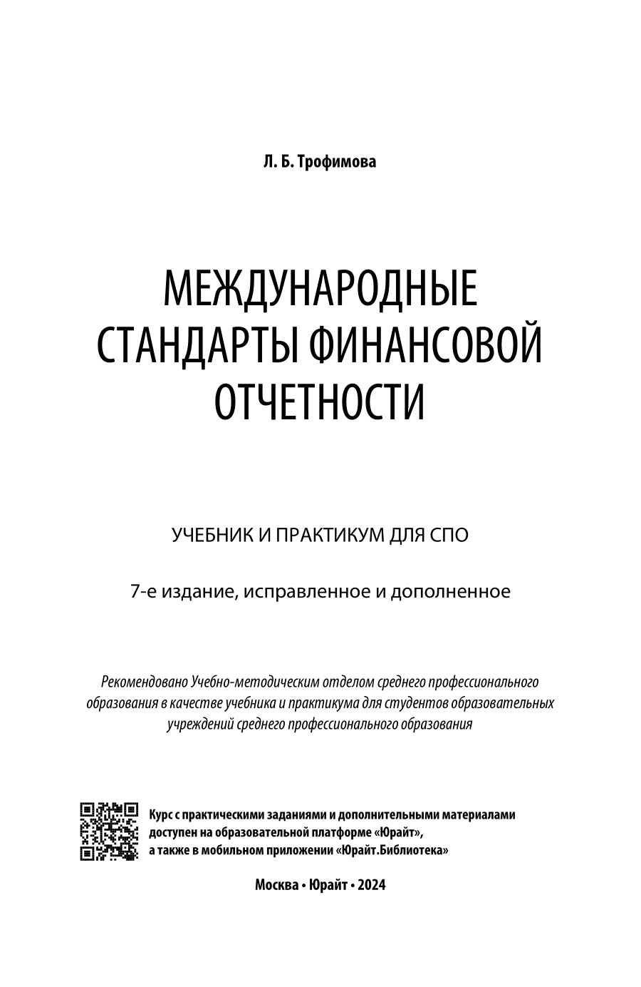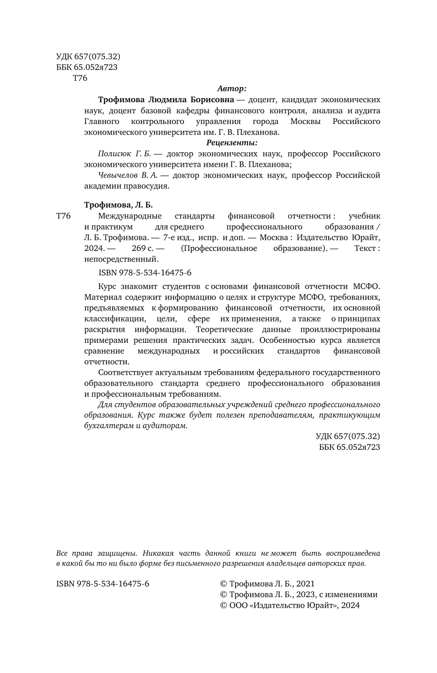 Международные стандарты финансовой отчетности 7-е изд. испр. и доп. Учебник и практикум для СПО (Людмила Борисовна Трофимова), 2023