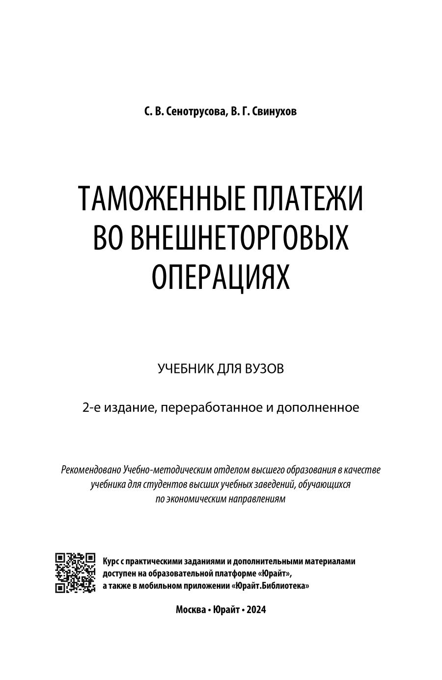 Таможенные платежи во внешнеторговых операциях 2-е изд. пер. и доп. Учебник для вузов (Владимир Геннадьевич Свинухов); ЮРАЙТ, 2023