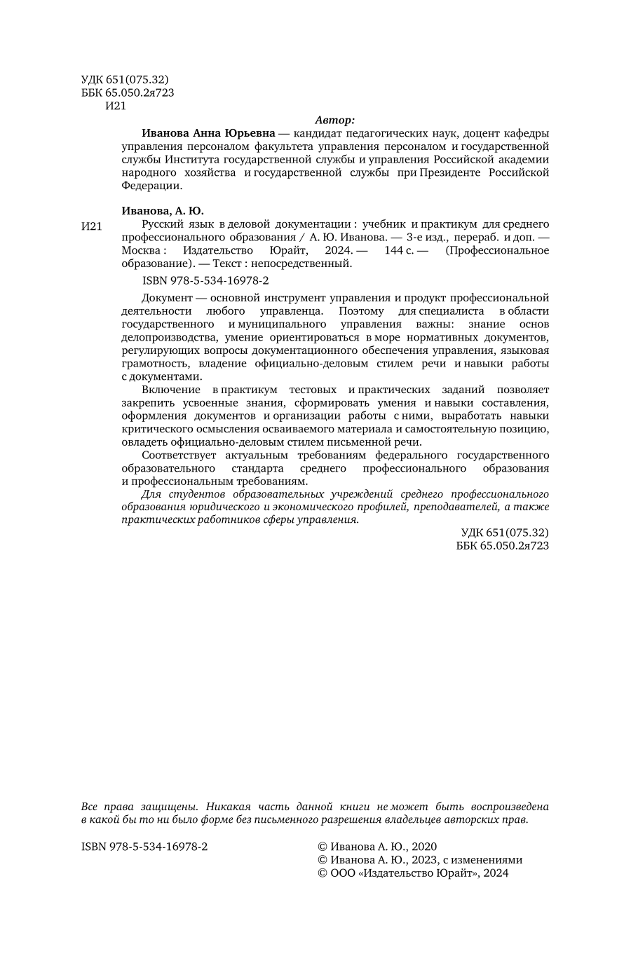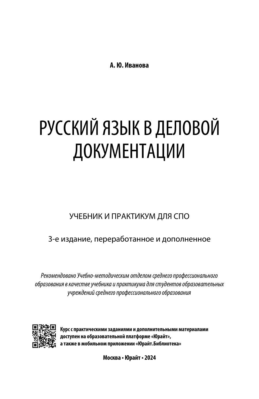 Русский язык в деловой документации 3-е изд. пер. и доп. Учебник и практикум для СПО (Анна Юрьевна Иванова); ЮРАЙТ, 2023