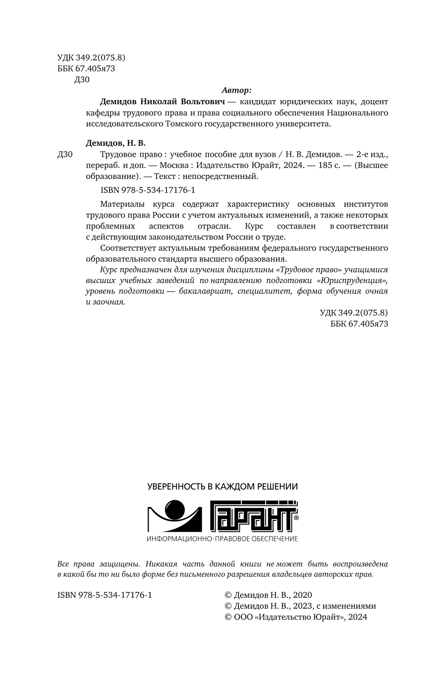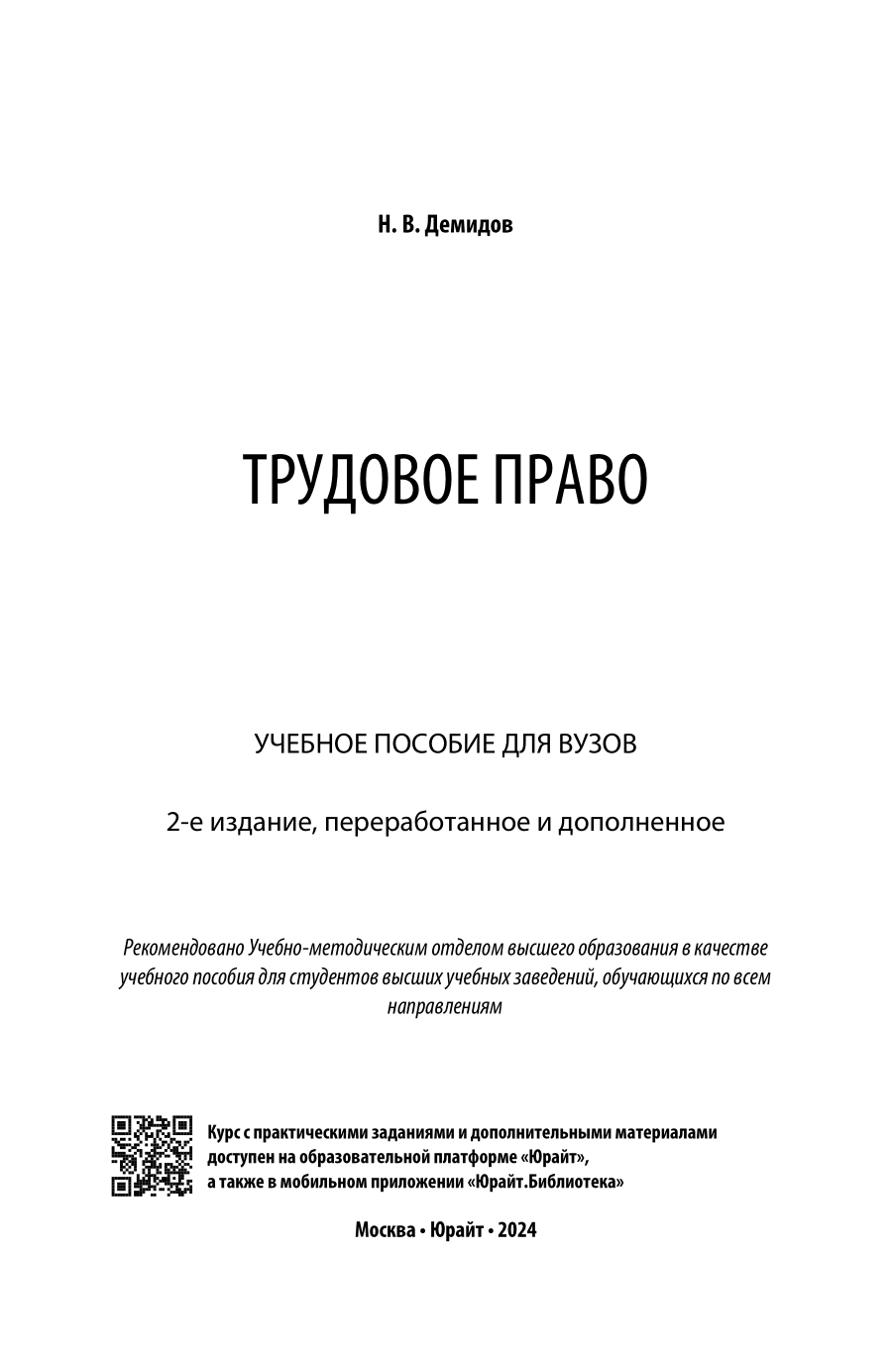 Трудовое право 2-е изд. пер. и доп. Учебное пособие для вузов (Николай Вольтович Демидов); ЮРАЙТ, 2023