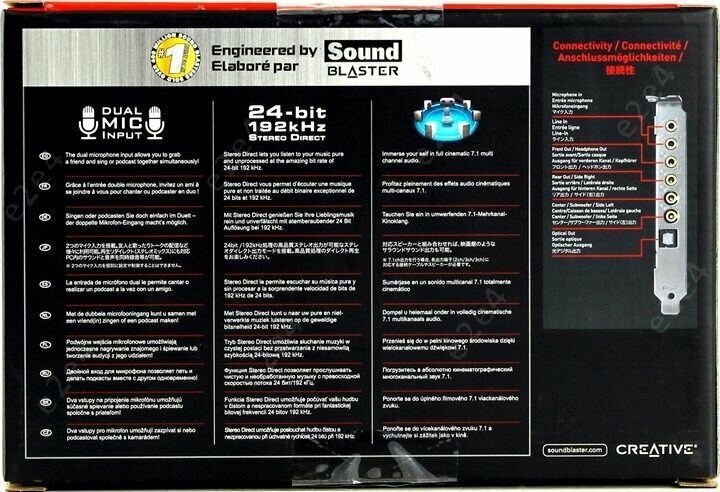 Имея топовый комп как-то не солидно было играть и слушать музыку со встроенным аудио. Решил купить сначала карту, а попозже наушники ( сейчас простой Панасоник за 1000 руб.) Выбирал долго, недели три. Уже голова начала пухнуть. Всё таки решил остановить свой выбор на этой карте. Чем привлекла? Есть усилитель для наушников ( сейчас ползунок не более 25-30%); звук 7.1; частота ЦАП (стерео) 192 кГц; есть два входа для микрофонов (кто любит караоке); по отзывам на профильных форумах едва ли не лучшая из внутренних звуковых карт от Creative.