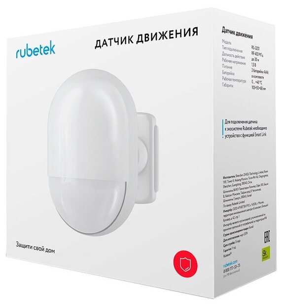 | Прочие особенности | Датчик движения Rubetek RS-3201 представляет собой компактное устройство, совместимое с центром управления Rubetek и Wi-Fi устройством Rubetek, поддерживающим функцию Smart Link. Модель использует радиоканал для связи, который гарантирует стабильное соединение с устройствами в радиусе 30 метров. Прибор позволяет вам получить оповещение на смартфон, когда в вашем доме обнаружено какое-либо движение. При появлении человека датчик включит автоматически свет в гардеробе, прихожей или в ванной, если его использовать в связке с умной розеткой или с реле. |