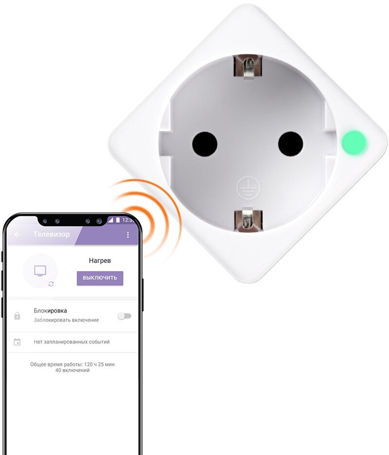 Розетка SkyPlug управляется со смартфона через интуитивно понятное приложение Ready For Sky. Умная розетка позволяет создать собственный умный дом, в котором климатической техникой, мультимедийными системами, освещением и другими бытовыми приборами можно управлять дистанционно из любой точки мира. Настройки смарт розетки дают возможность: контролировать технику при выходе из зоны действия Bluetooth - утюг или климатическая техника автоматически отключатся, когда все уйдут из дома управлять бытовой техникой