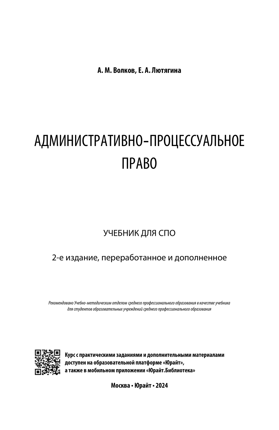 Административно-процессуальное право 2-е изд. пер. и доп. Учебник для СПО (Елена Александровна Лютягина); ЮРАЙТ, 2023