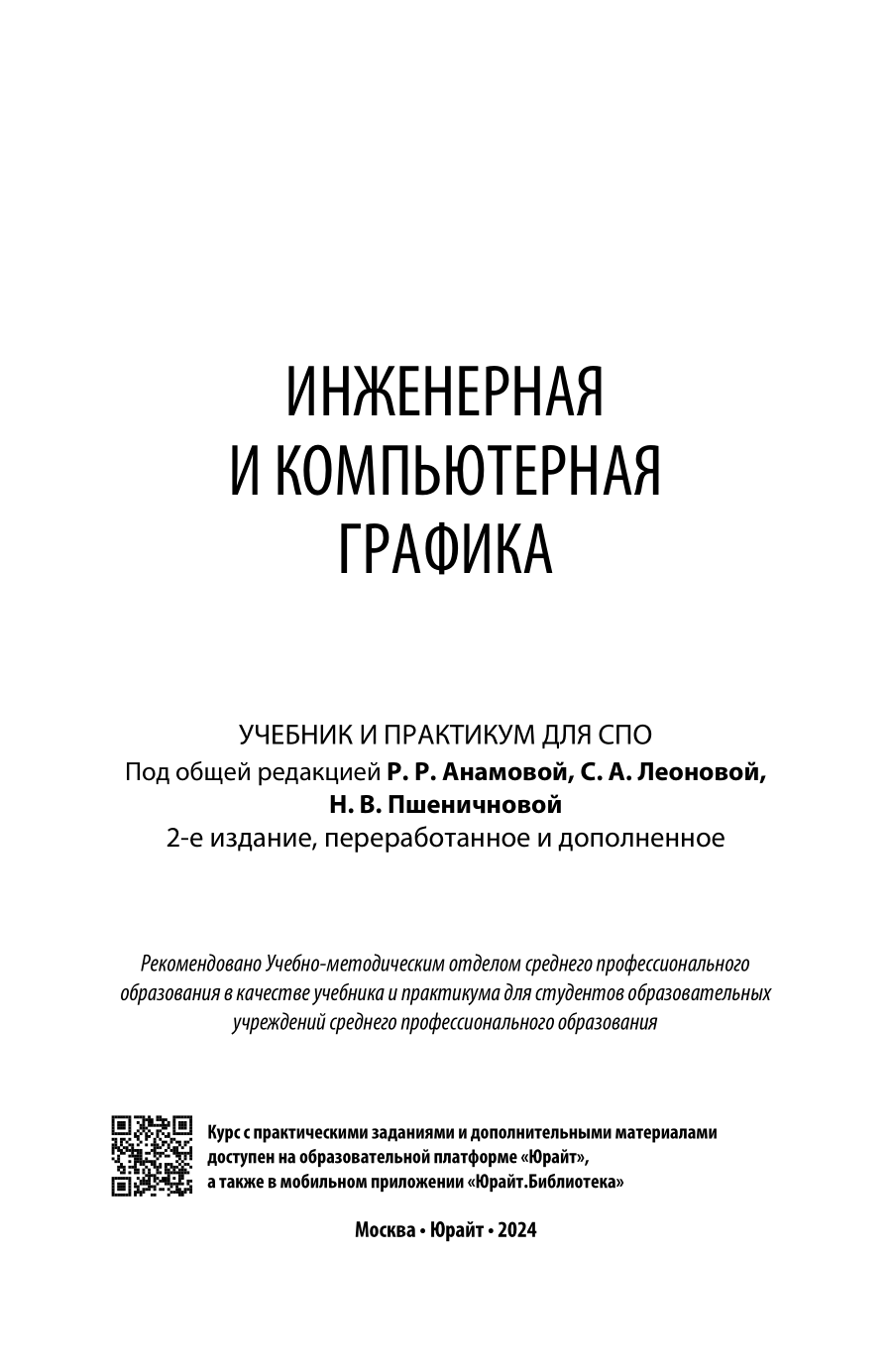Инженерная и компьютерная графика 2-е изд. пер. и доп. Учебник и практикум для СПО (Татьяна Игоревна Миролюбова); ЮРАЙТ, 2023
