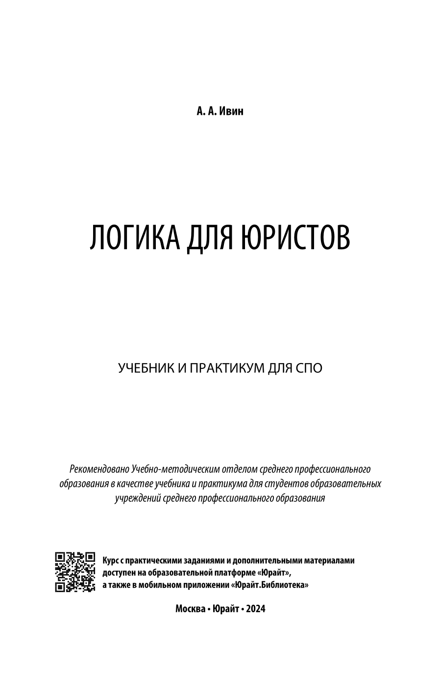 Логика для юристов. Учебник и практикум для СПО (Александр Архипович Ивин); ЮРАЙТ, 2023