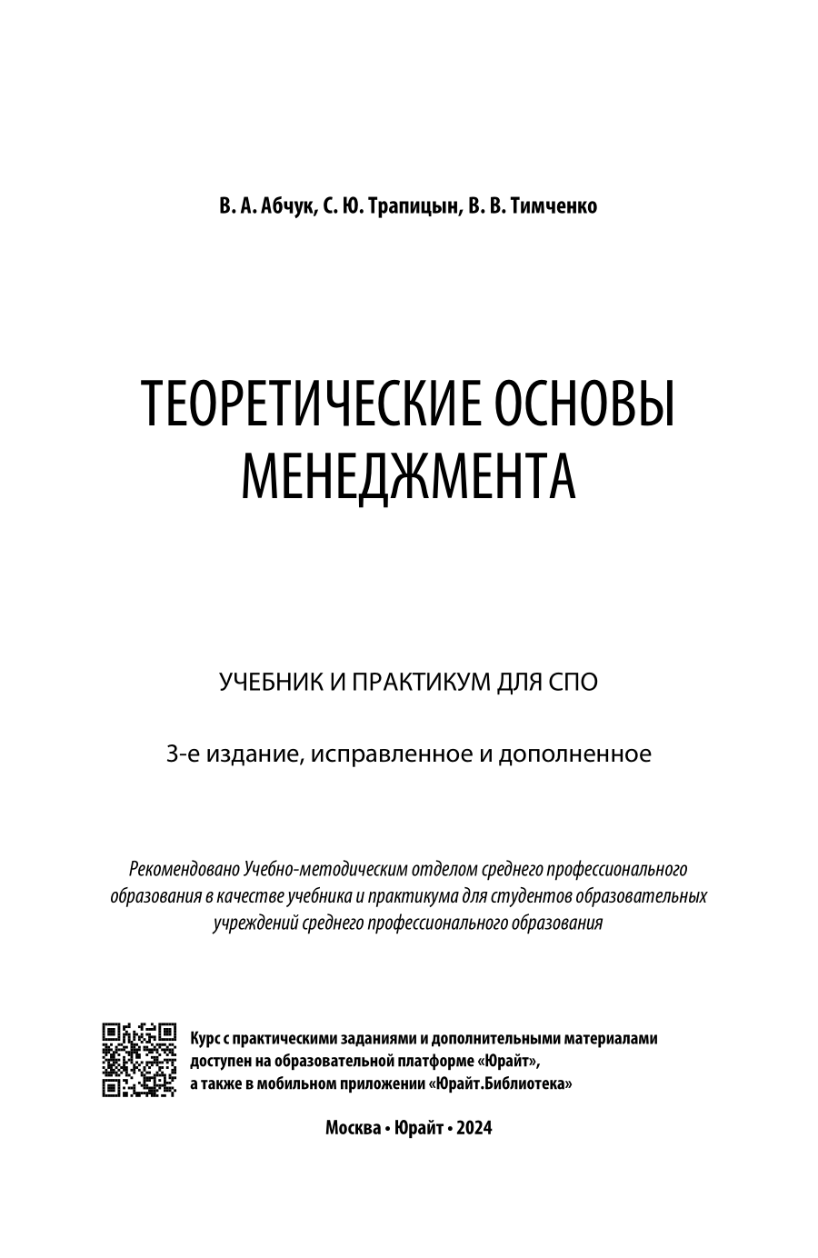 Теоретические основы менеджмента 3-е изд. испр. и доп. Учебник и практикум для СПО (С. Ю. Трапицын); ЮРАЙТ, 2023