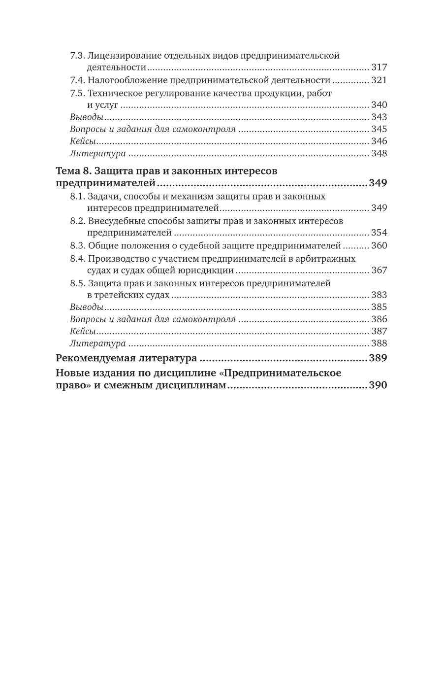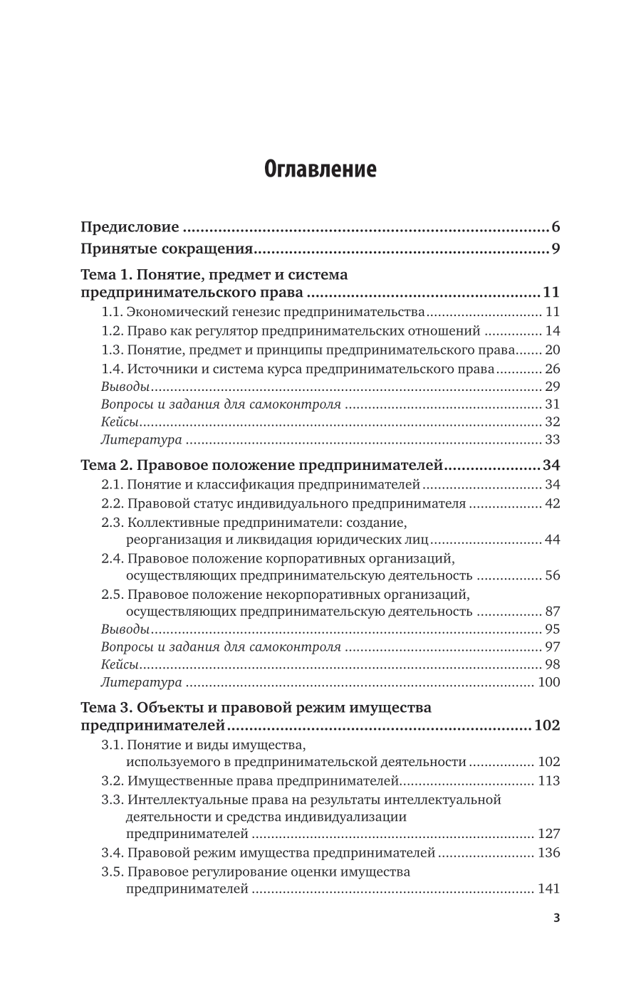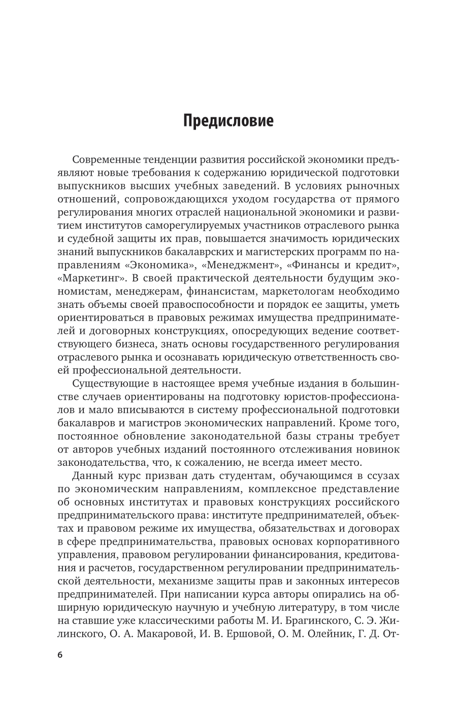 Главная цель настоящего учебника помочь студентам-экономистам овладеть знаниями в области предпринимательского права, а также смежных отраслях частного и публичного права, регулирующих ведение бизнеса. Несомненными достоинствами данного издания являются четкость формулировок и методически выверенное изложение сложного юридического материала. В основу его подачи положен компетентностный подход. Проверить полученные теоретические знания студенты могут с помощью контрольных вопросов и кейсов, представленных ко всем главам учебника. Проанализировав конкретные хозяйственные ситуации, студенты имеют возможность приобрести необходимые для практической работы навыки принятия экономически оптимальных и юридически грамотных управленческих решений. Поэтому учебник будет интересен и полезен не только студентам, но и предпринимателям, руководителям и специалистам коммерческих структур. Данный учебник хорошая база для изучения курса и подготовки к текущей и итоговой аттестации по дисциплине.