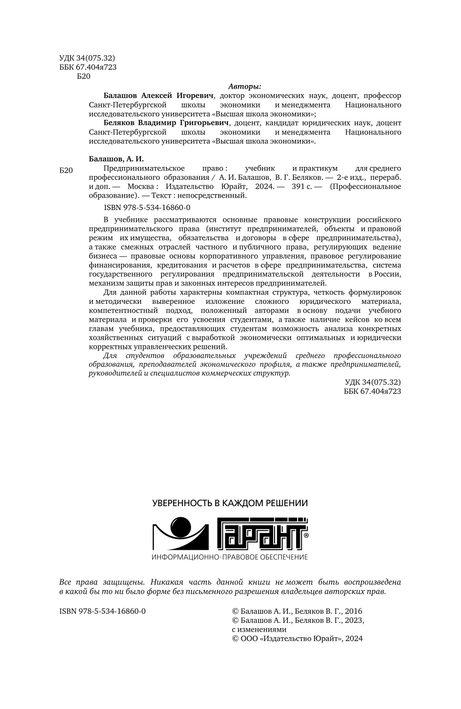 Сервис сравнения цен СкидкаГИД предлагает сравнить цены на товар «Книга: Предпринимательское право 2-е изд. пер. и доп. Учебник и практикум для СПО (Владимир Григорьевич Беляков), 2023»