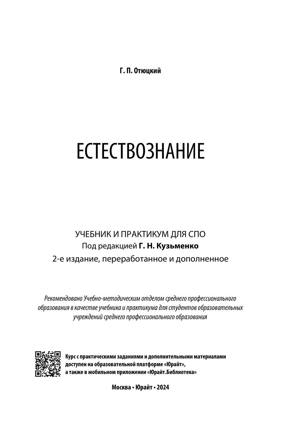 Естествознание 2-е изд. пер. и доп. Учебник и практикум для СПО (Григорий Николаевич Кузьменко); ЮРАЙТ, 2023