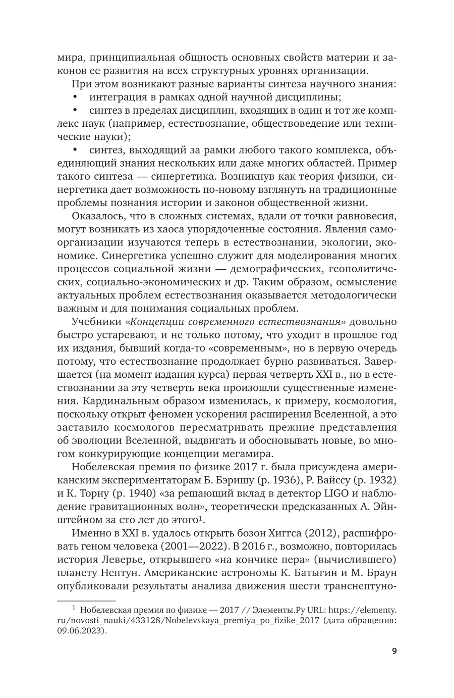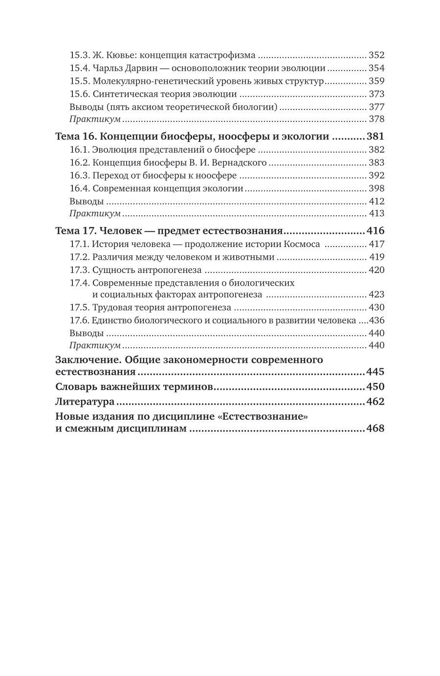 Курс формирует компетенции учащихся в объеме, предусмотренном требованиями стандарта среднего (полного) общего образования по естествознанию. Представлены концепции, объясняющие суть процессов в живой и неживой природе, рассказано о современных научных методах познания. Изложены ведущие идеи, возникшие в науке и сыгравшие важную роль в становлении мировоззренческой и профессиональной культуры современных специалистов-гуманитариев. Соответствует актуальным требованиям федерального государственного образовательного стандарта среднего профессионального образования и профессиональным требованиям. Структура курса и характер изложения рассчитаны на студентов образовательных учреждений среднего профессионального образования, обучающихся по гуманитарным специальностям. Может быть полезен всем читателям, интересующимся философскими вопросами естествознания.