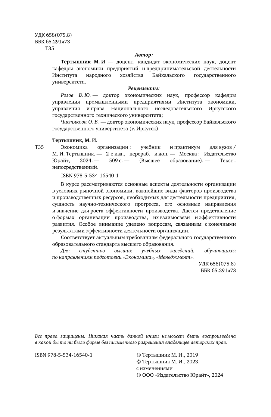 Экономика организации 2-е изд. пер. и доп. Учебник и практикум для вузов (Михаил Иванович Тертышник); ЮРАЙТ, 2023