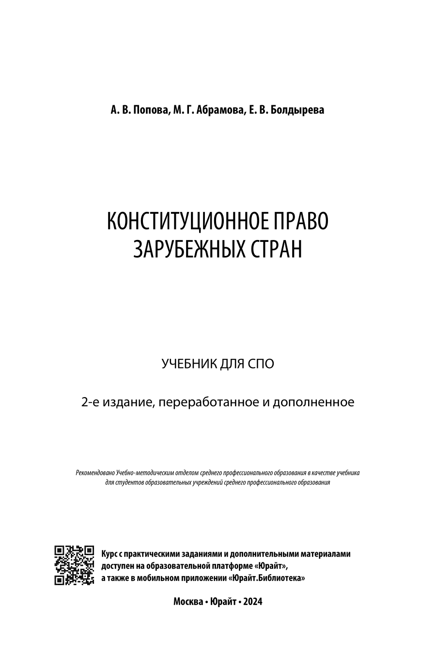 Конституционное право зарубежных стран 2-е изд. пер. и доп. Учебник для СПО (Марианна Григорьевна Абрамова); ЮРАЙТ, 2023
