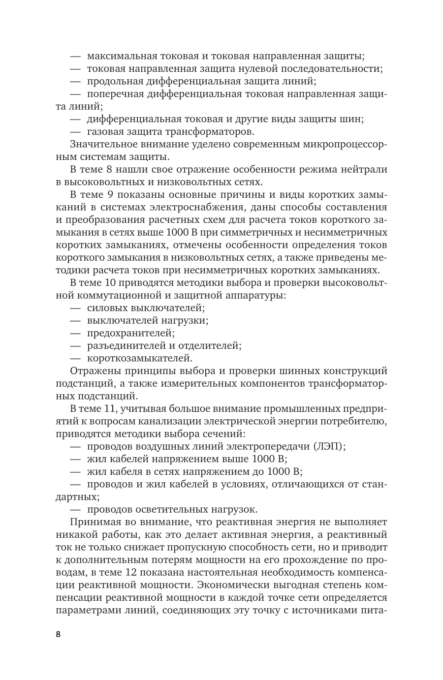 Представленный материал является систематизированным изложением основных разделов курса «Электроснабжение» с учетом современных достижений в области энергосбережения в современной энергетике. Приводятся как общие сведения об электроэнергетике по принципу «производство - преобразование - особенности исполнения способов передачи электроэнергии», так и методики проектирования, оптимизации существующих систем электроснабжения, экономической оценки принимаемых технических решений. Каждая тема содержит теоретические сведения и примеры расчета объектов электроснабжения. Описываются общепринятые и перспективные направления развития технологий энергосбережения.