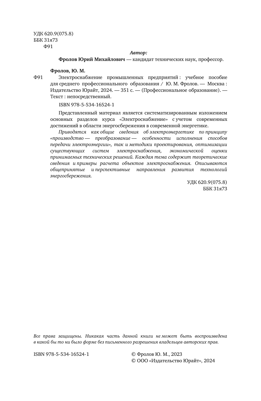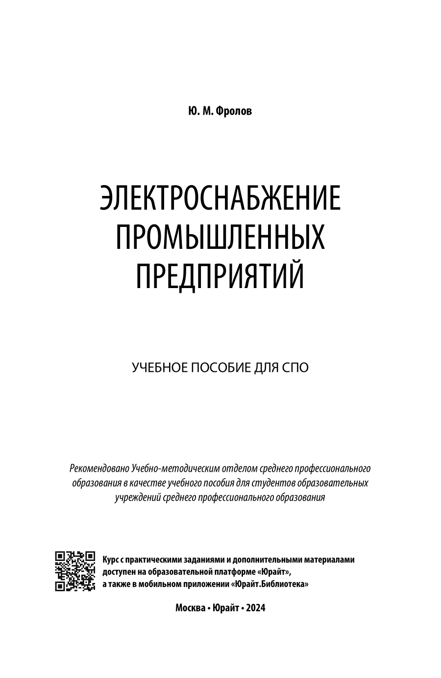 Электроснабжение промышленных предприятий. Учебное пособие для СПО (Юрий Михайлович Фролов); ЮРАЙТ, 2023