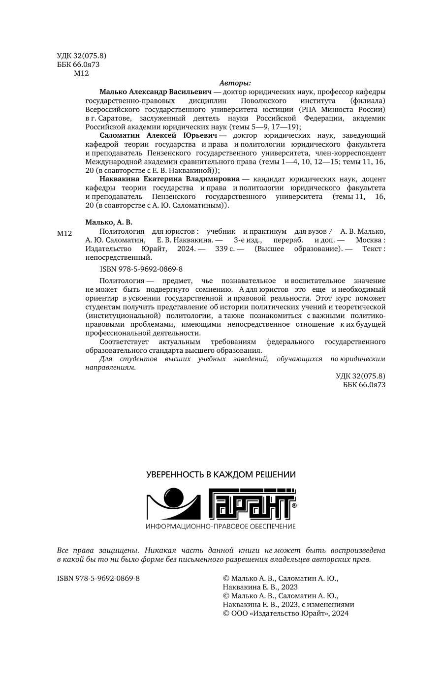 | Автор(ы) | Малько Александр Васильевич, Саломатин Алексей Юрьевич, Наквакина Екатерина Владимировна |