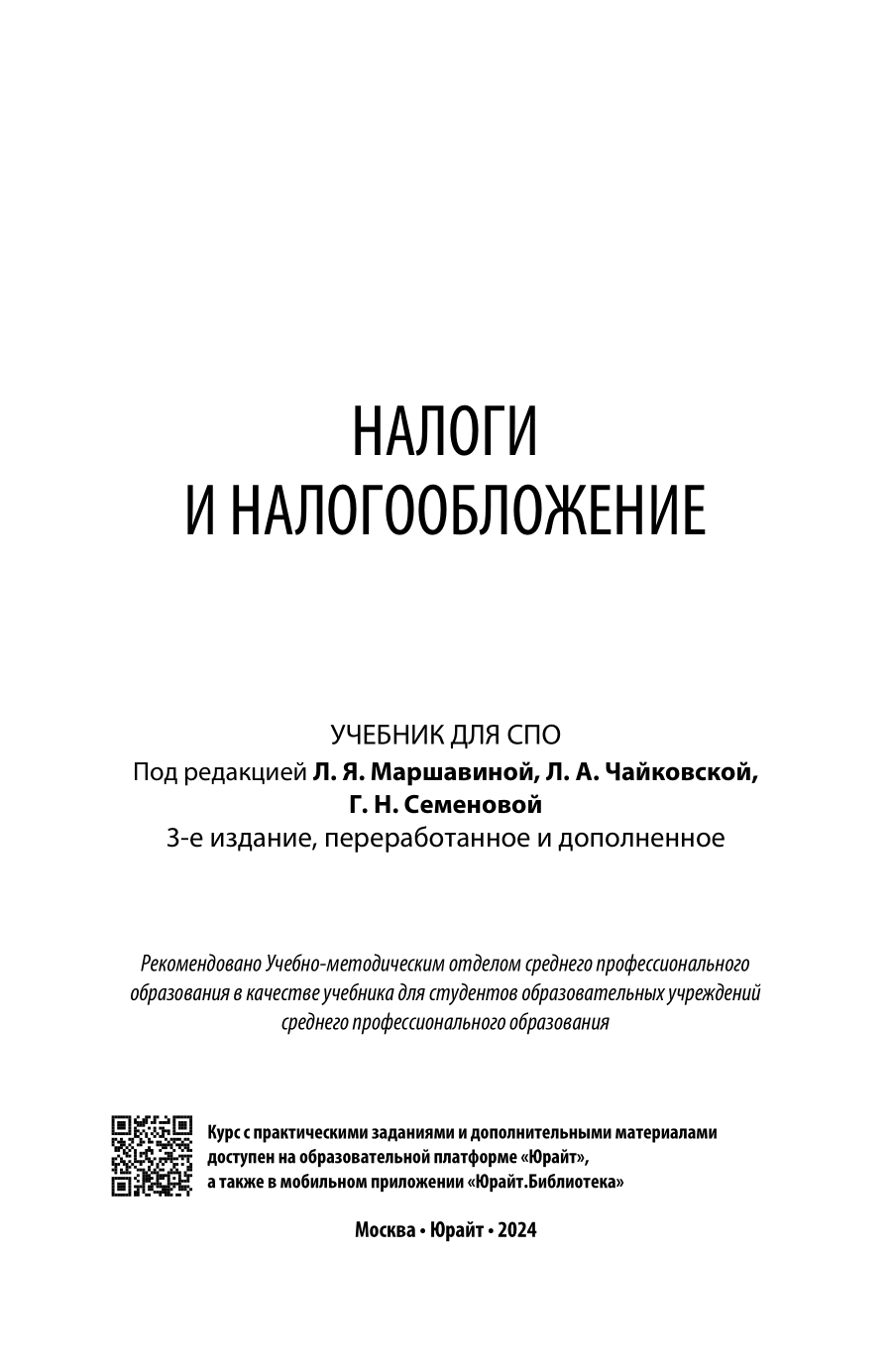 Налоги и налогообложение 3-е изд. пер. и доп. Учебник для СПО (Сергей Павлович Колчин); ЮРАЙТ, 2023