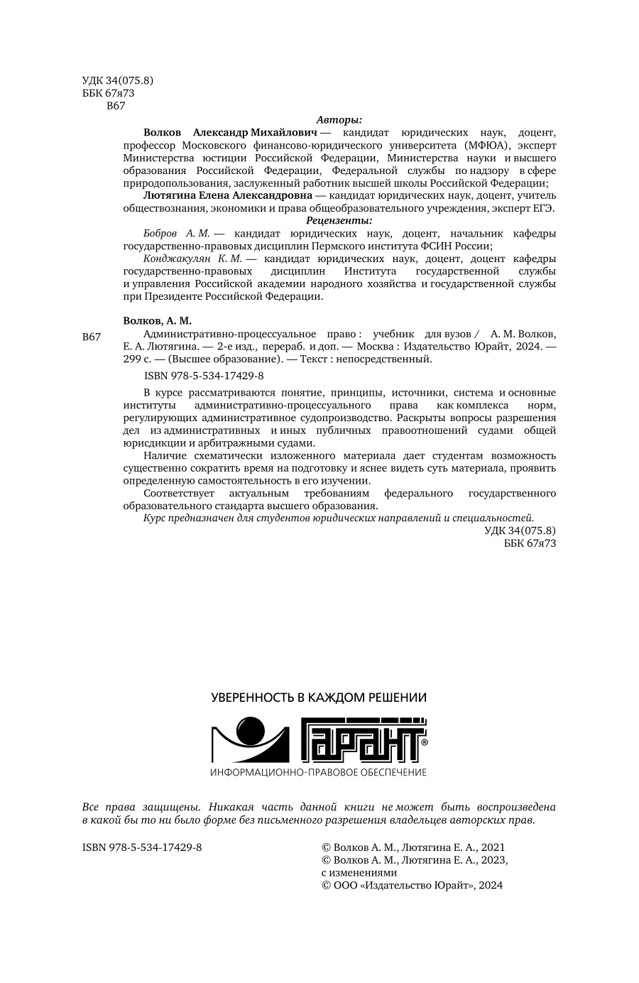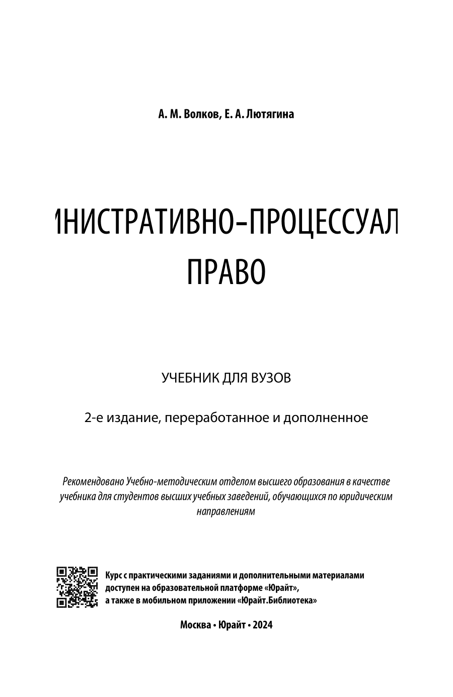 Административно-процессуальное право 2-е изд. пер. и доп. Учебник для вузов (Елена Александровна Лютягина); ЮРАЙТ, 2023
