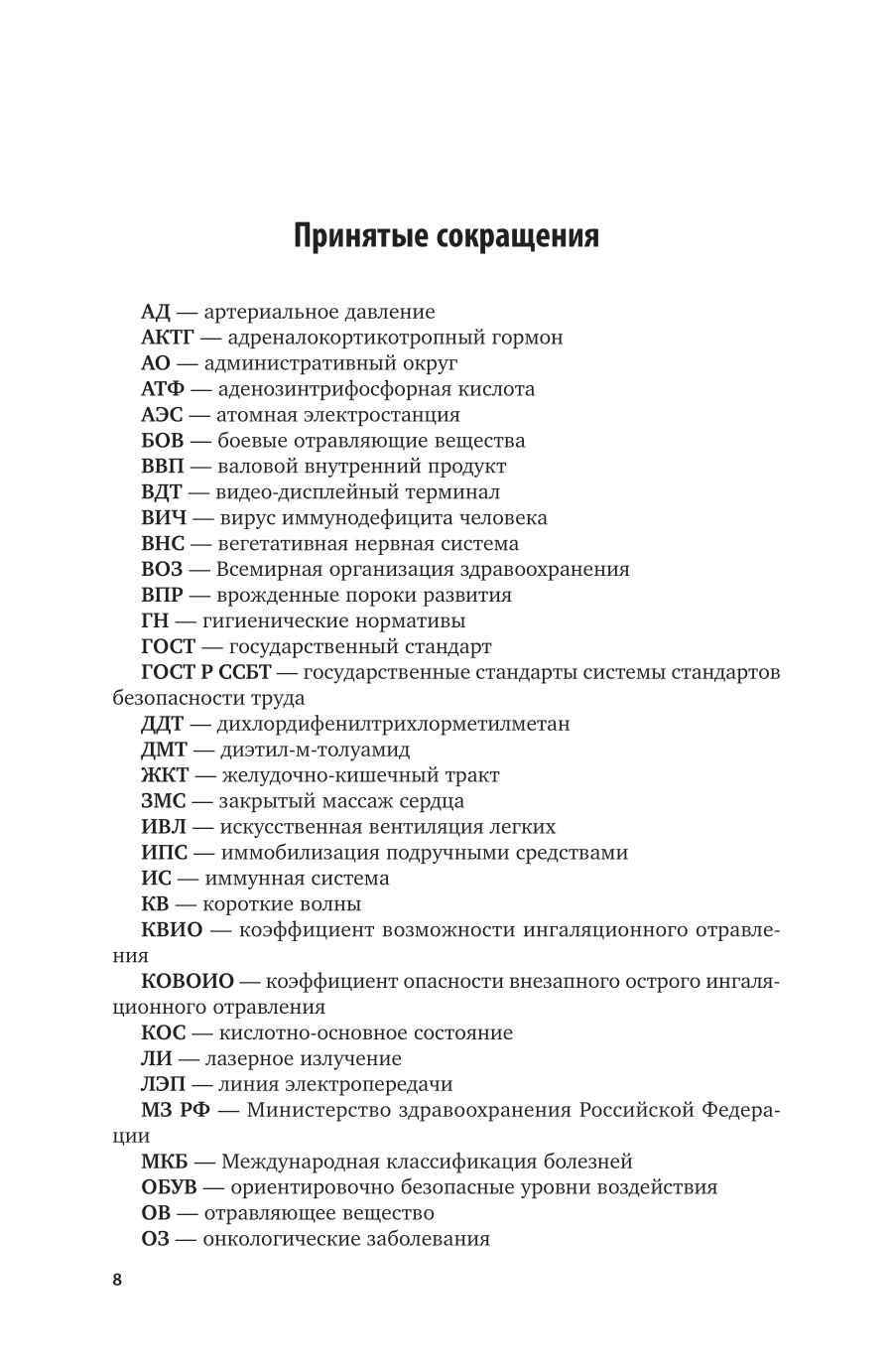 В курсе рассматриваются взаимосвязи человека со средой обитания и воздействие негативных факторов окружающей среды на защитные системы организма человека, раскрываются общие понятия промышленной токсикологии, даются представление о профессиональных заболеваниях и рекомендации по оказанию первой помощи. Соответствует актуальным требованиям федерального государственного образовательного стандарта среднего профессионального образования и профессиональным требованиям. Для студентов образовательных учреждений среднего профессионального образования, а также для широкого круга читателей, интересующихся вопросами экологии и безопасности жизнедеятельности.