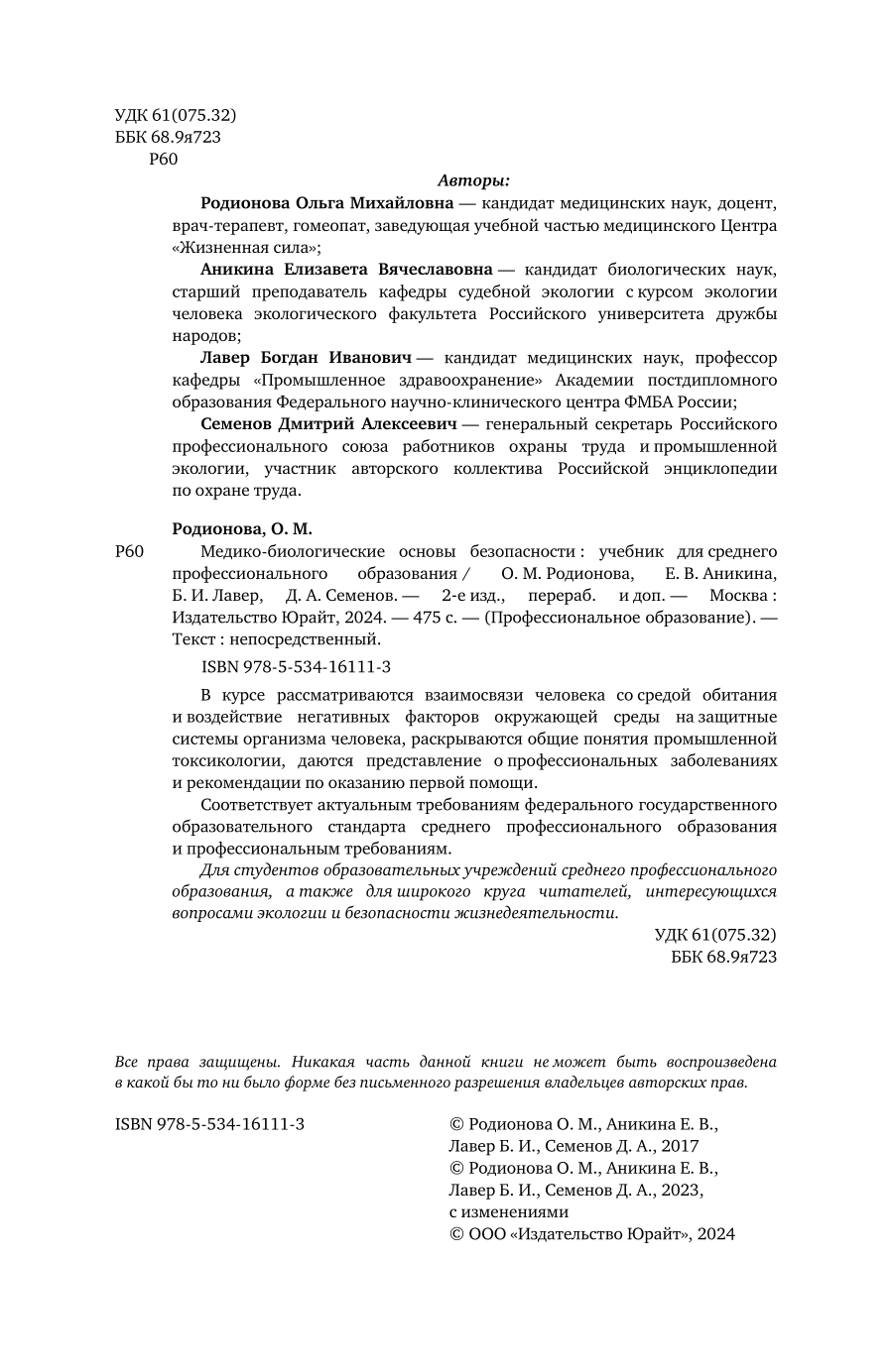 Медико-биологические основы безопасности 2-е изд. пер. и доп. Учебник для СПО (Дмитрий Алексеевич Семенов); ЮРАЙТ, 2023