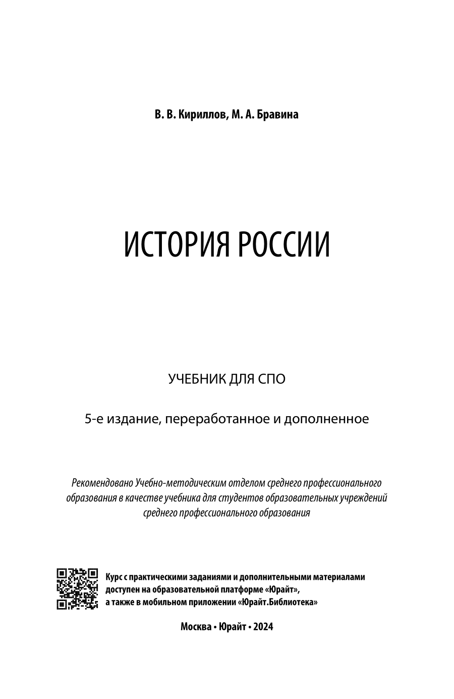 История России 5-е изд. пер. и доп. Учебник для СПО (В. В. Кириллов); ЮРАЙТ, 2023