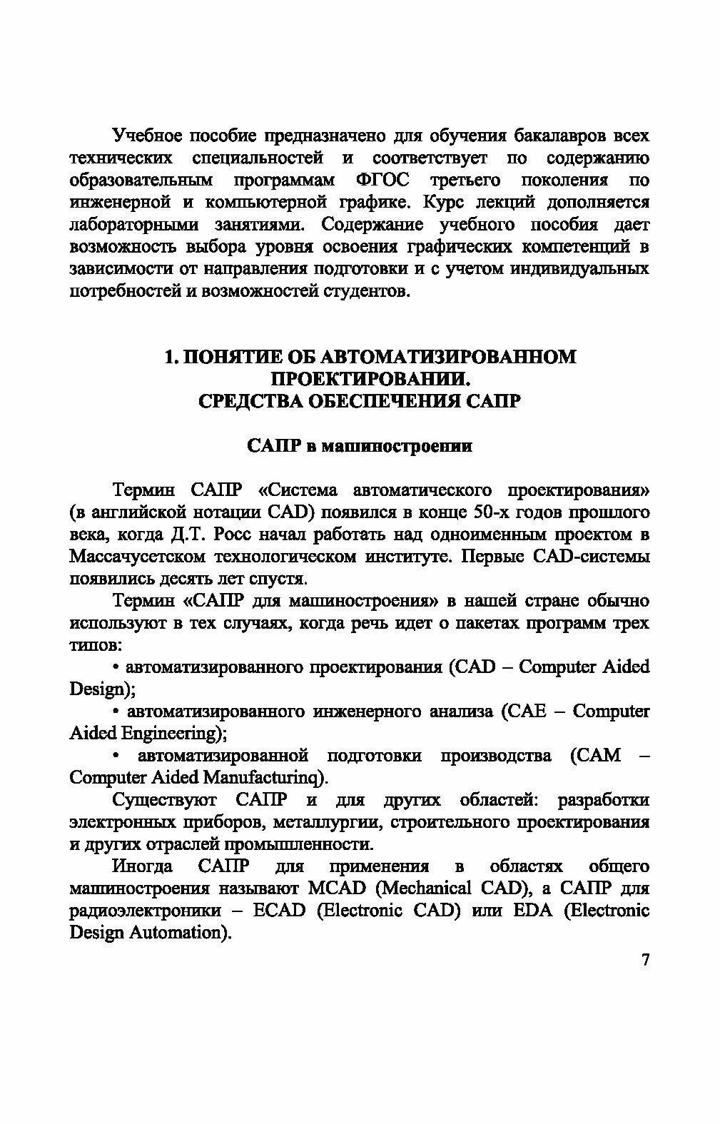 Основное внимание в пособии уделено описанию методов компьютерной графики и геометрического моделирования как основе современных систем САПР в машиностроении. Описывается создание, обработка и воспроизведение изображений с использованием средств вычислительной техники, дается введение в САПР и знакомство с теоретическими основами компьютерной графики. Пособие предназначено для обучения бакалавров всех технических специальностей и соответствует по содержанию образовательным программам ФГОС третьего поколения по инженерной и компьютерной графике, а также представляет интерес для аспирантов и ИТР, связанных в своей практической деятельности с применением компьютерной графики и методов геометрического моделирования в САПР.