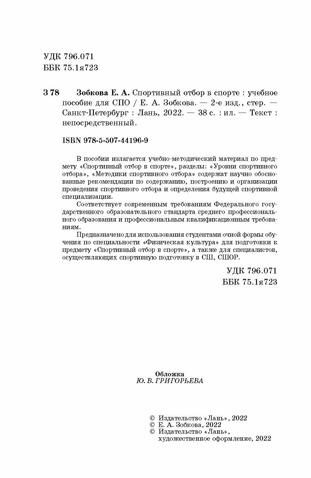 Сервис сравнения цен СкидкаГИД предлагает сравнить цены на товар «Книга: Спортивный отбор в спорте (Елена Анатольевна Зобкова); Лань, 2022»