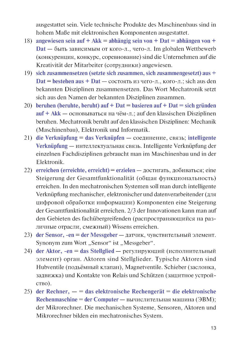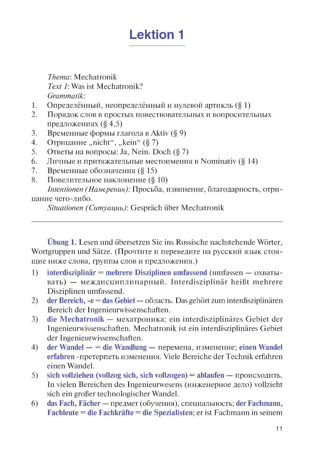 Основная цель - развитие навыков профориентированного чтения и коммуникативных умений для участия в дискуссиях по общедоступным и профессиональным проблемам. Рассчитано на весь курс аудиторных занятий и внеаудиторной самостоятельной работы (1-5 семестры). Включает 10 уроков, в которых рассматриваются общие вопросы: «Введение в мехатронику», «Изучение мехатроники в вузах Германии и Европы», а также предлагаются профессиональные темы, такие как "Механические и электронные интегрированные системы", «Основы математического моделирования», «Модели механических конструкций, электрических приводов и машин», «Датчики и исполнительные элементы». Соответствует ФГОС ВО последнего поколения. Для студентов бакалавриата, обучающихся по направлениям «Мехатроника», «Роботы и робототехнические системы».