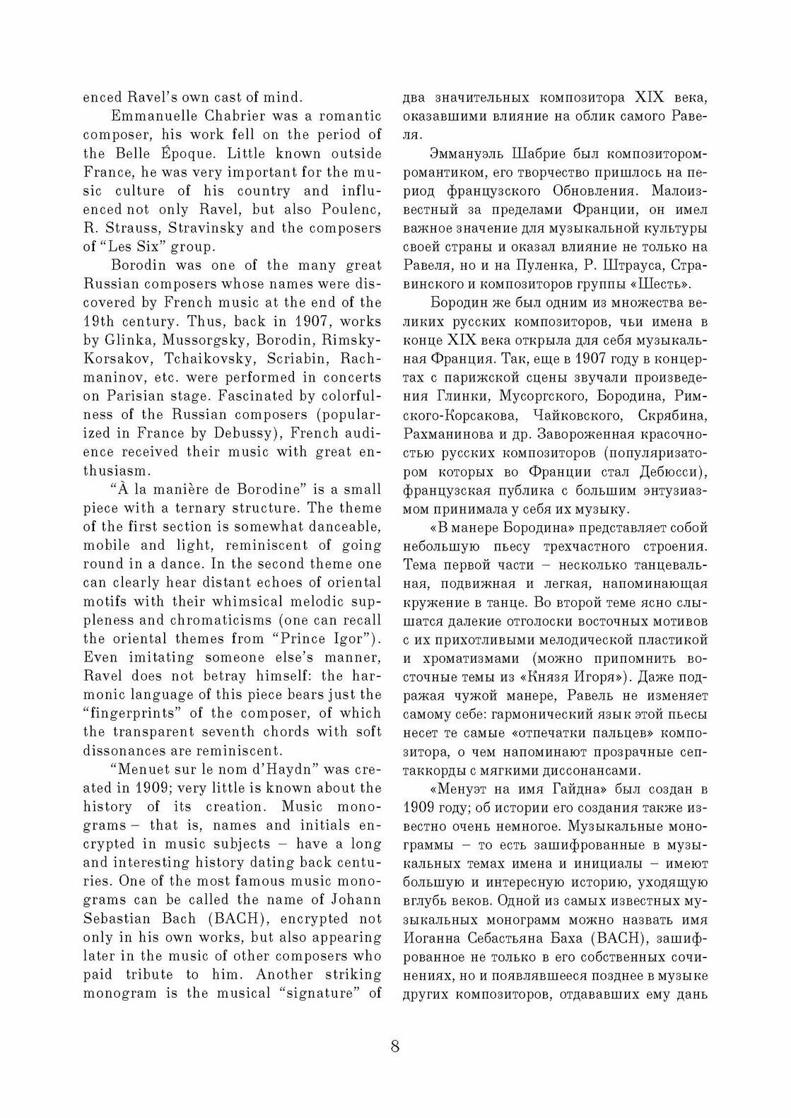 Данный сборник содержит избранные пьесы из фортепианного творчества Мориса Равеля. Целью сборника стало желание познакомить музыкантов с малоизвестными пьесами Равеля, редко исполняемыми в концертах и доступными как для любителей, так и для профессионалов. В нем собраны самые разные произведения - как наиболее известные (например, «Павана на смерть инфанты» или «Сонатина»), так и редко публикуемые - «Прелюдия», «Менуэт на имя Гайдна» и т. д. Все эти пьесы объединены относительной простотой музыкального текста и могут подойти для исполнения в старших классах музыкальных школ или на первых курсах музыкальных колледжей. 2-е издание, стереотипное.