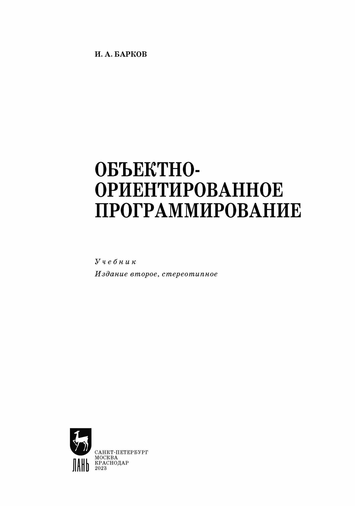 Объектно-ориентированное программирование. Учебник для вузов (И. А. Барков); Издательство ЛАНЬ, 2023