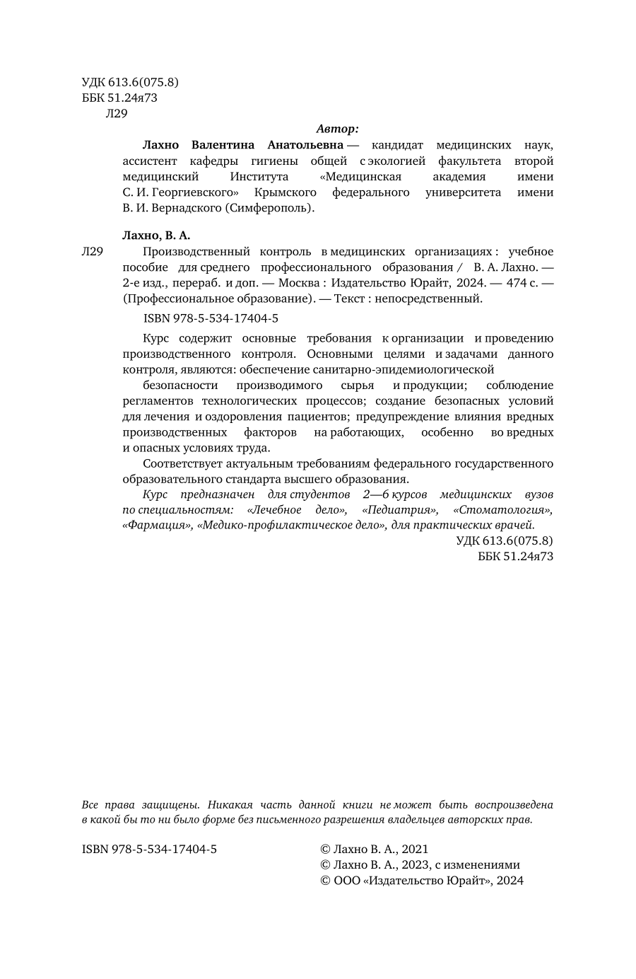 Производственный контроль в медицинских организациях 2-е изд. пер. и доп. Учебное пособие для СПО (Валентина Анатольевна Лахно); ЮРАЙТ, 2023