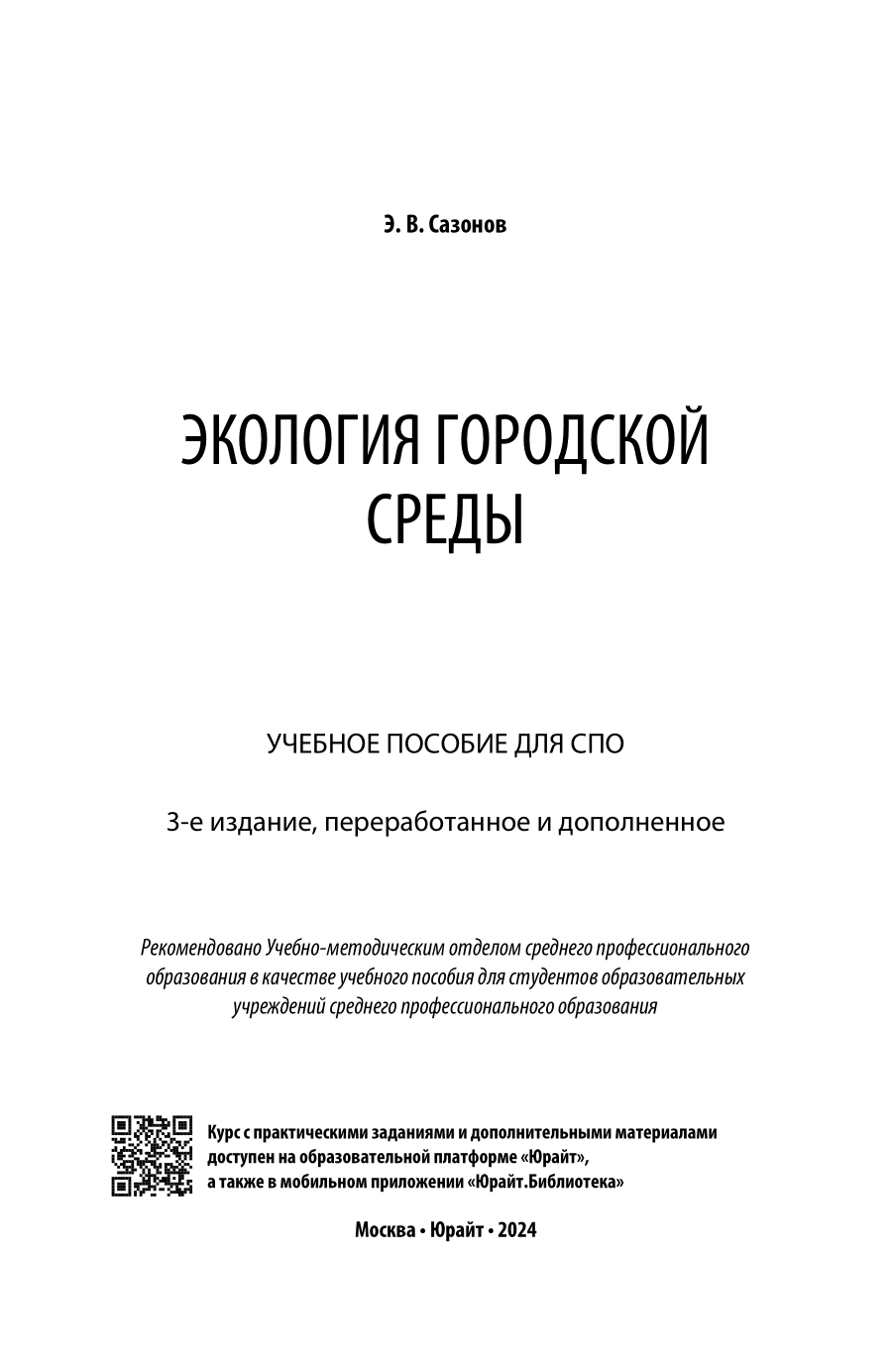 Экология городской среды 3-е изд. пер. и доп. Учебное пособие для СПО (Эдуард Владимирович Сазонов); ЮРАЙТ, 2023