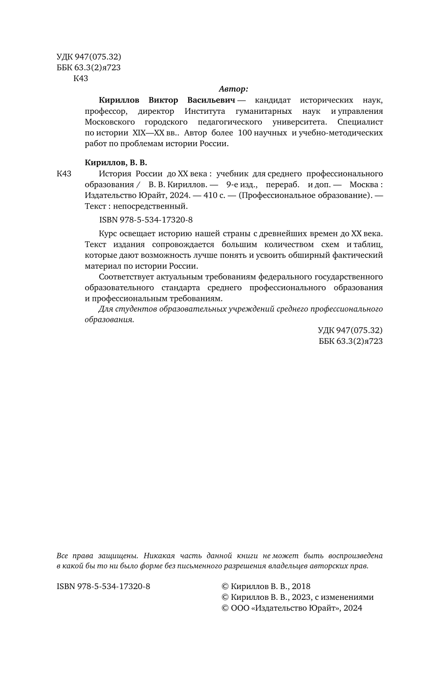 Сервис сравнения цен СкидкаГИД предлагает сравнить цены на товар «Книга: История России до ХХ века 9-е изд. пер. и доп. Учебник для СПО (В. В. Кириллов); ЮРАЙТ, 2023»